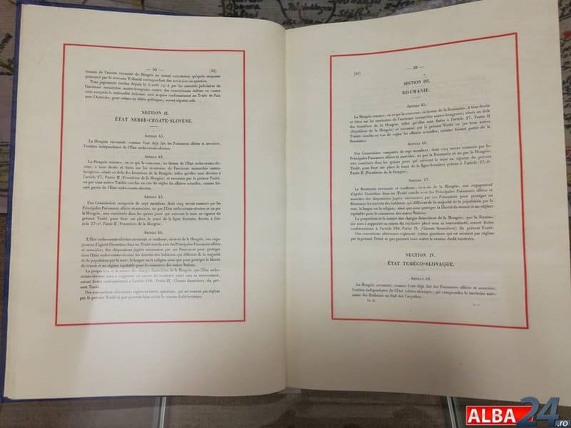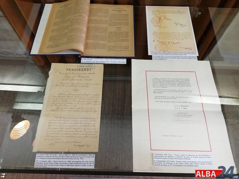 Tratatele de pace semnate de România la Paris după încheierea Primului Război Mondial, care au modificat granițele Europei din acea perioadă, sunt expuse în premieră în România la Muzeul Național al Unirii din Alba Iulia.