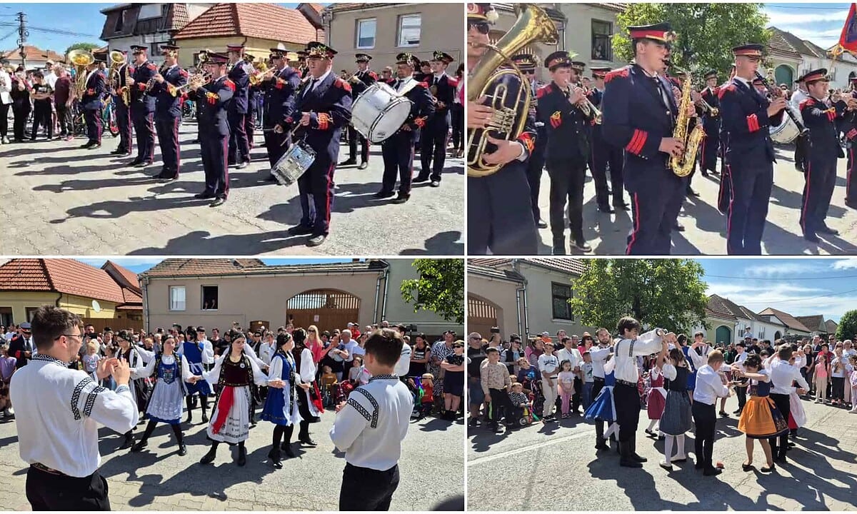 FOTO-VIDEO: Fanfara din Petrești a vestit primăvara, de 1 Mai. Concert și spectacol de dansuri săsești, în fața Căminului Cultural