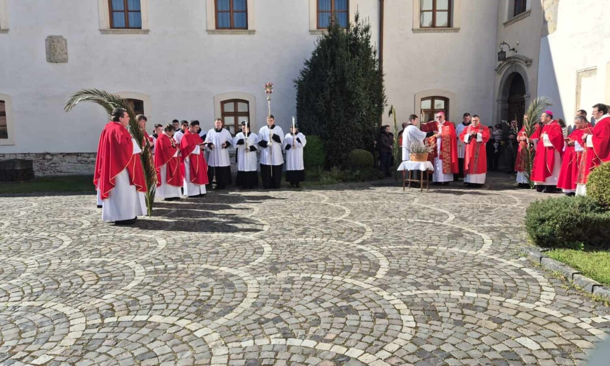 Credincioșii romano-catolici s-au adunat în număr mare în curtea interioară pentru a participa la acest important moment spiritual care marchează începutul Săptămânii Patimilor.
