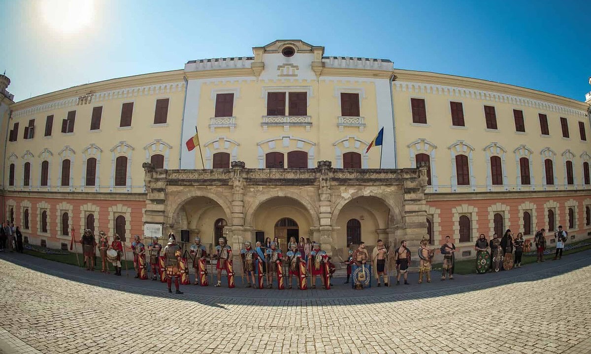 Romanii, dacii, gladiatorii și frumoasele nimfe au avut sâmbătă o reprezentație cu caracter privat, în fața Muzeului Național al Unirii din Cetatea Alba Carolina.