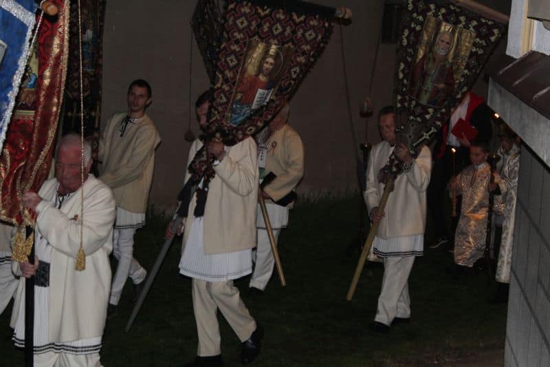 După ce au luat lumină, cei mai nerăbdători dintre enoriași, s-au îndreptat spre casă ori la rude pentru a le vesti și lor vestea Învierii Domnului. Dar cei mai mulți au ales să asiste la întreaga slujbă de Înviere.