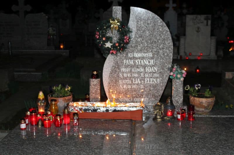 În noaptea de Înviere, mulți dintre cei care au luat parte din Lumina Sfântă, s-au dus și în cimitirile din vecinătatea bisericilor, pentru a pune o lumânare aprinsă cu lumina Învierii Domnului, la mormintele celor dragi.