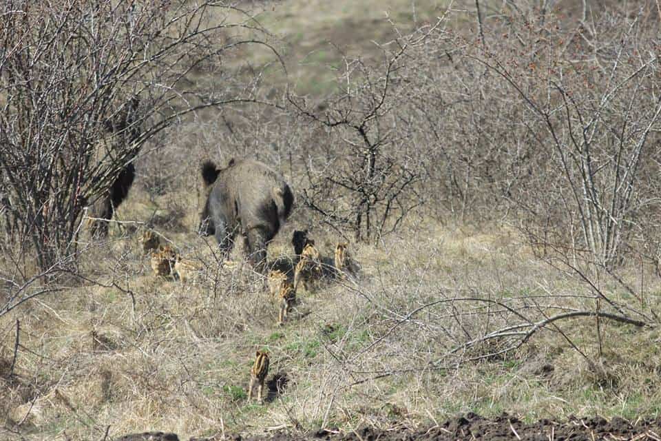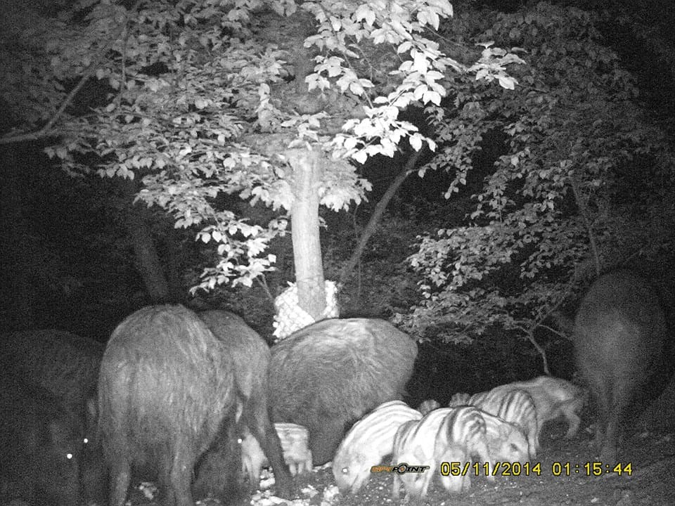 Un video realizat la o hrănitoare pentru mistreți, aflată ”foarte aproape de civilizație” a surprins o ursoaică cu trei pui în timp ce furau din porumbul pus acolo ca supliment de iarnă pentru hrana porcilor.
