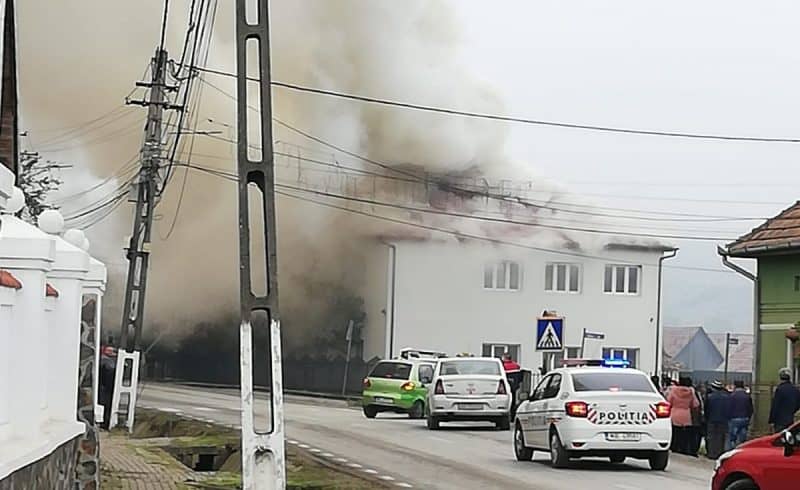 Din primele informații incendiul se manifestă la nivelul acoperișului.