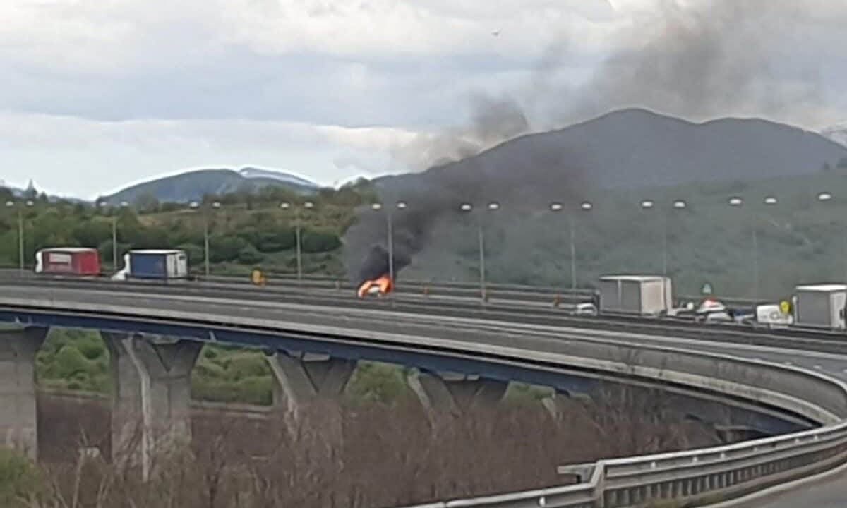 O mașină a luat foc joi după-amiaza, în jurul orei 18:00, pe Autostrada A1, sensul Sebeș - Sibiu. Evenimentul s-a produs pe viaductul de la Săcel.