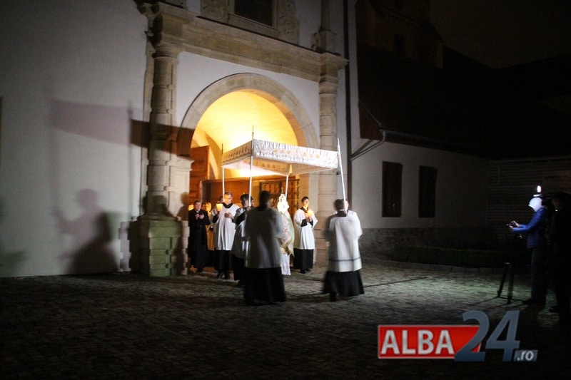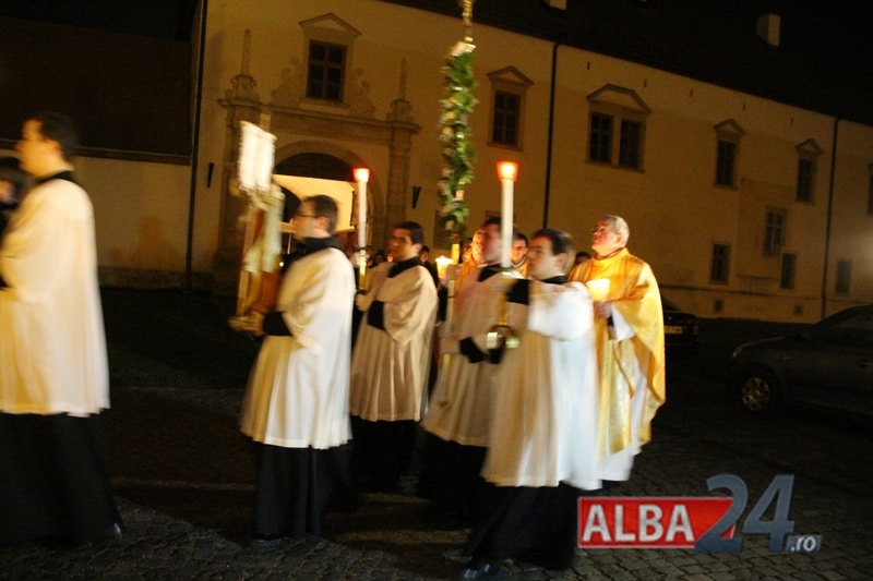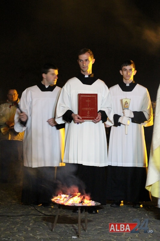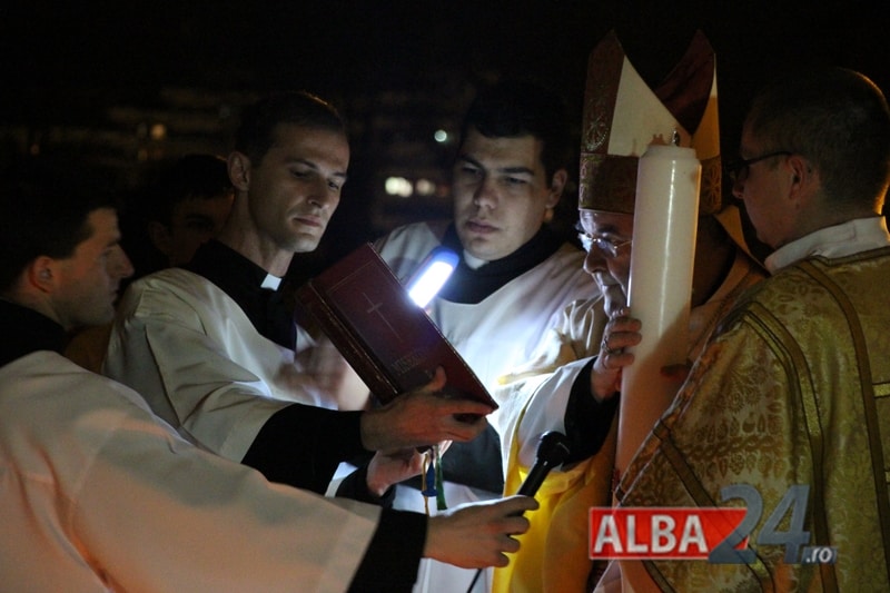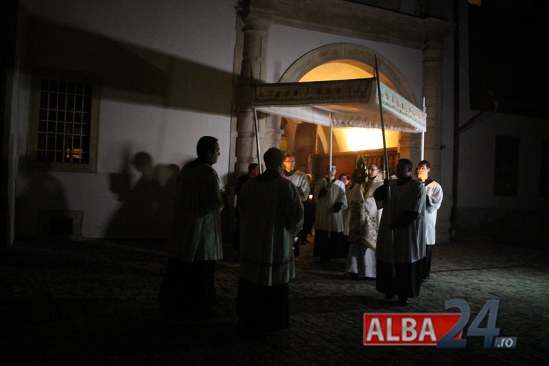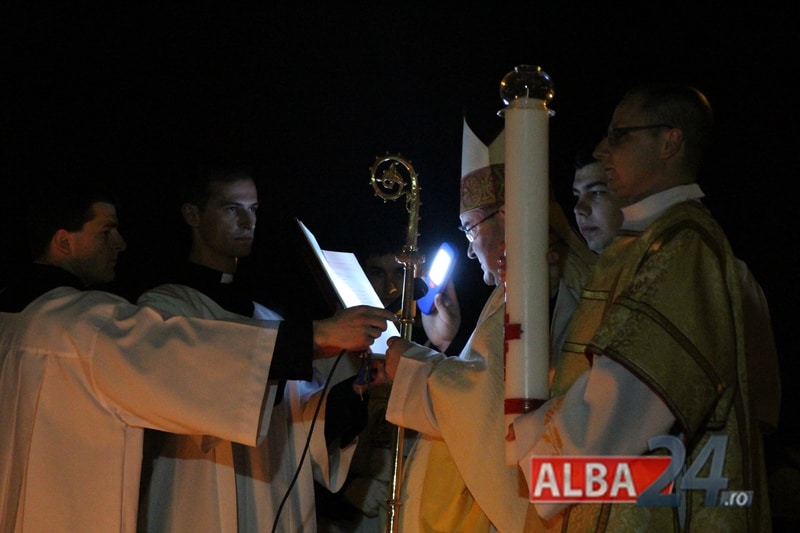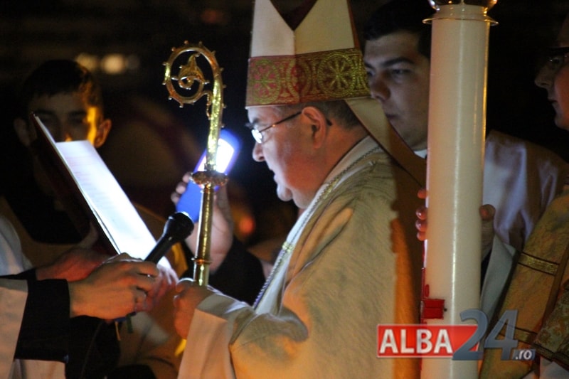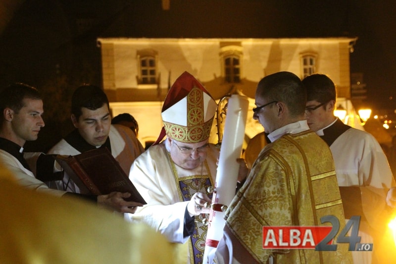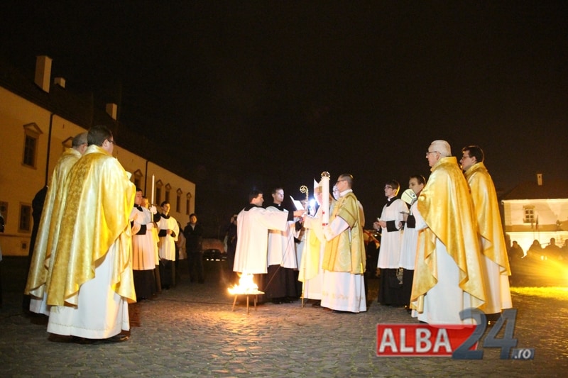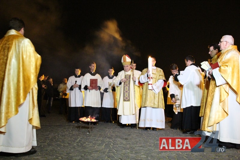 Vigilia Pascală a început la ora 21.00, fiind prezidată de ÎPS Arhiepiscop György Jakubinyi și a durat aproximativ două ore și jumătate. Ritualul a începe în faţa bisericii catedrale, prin binecuvântarea focului şi aprinderea Lumânării Pascale, de la care au fost aprinse lumânările credincioşilor, iar apoi credincioşii au ascultat vestirea solemnă a Învierii.