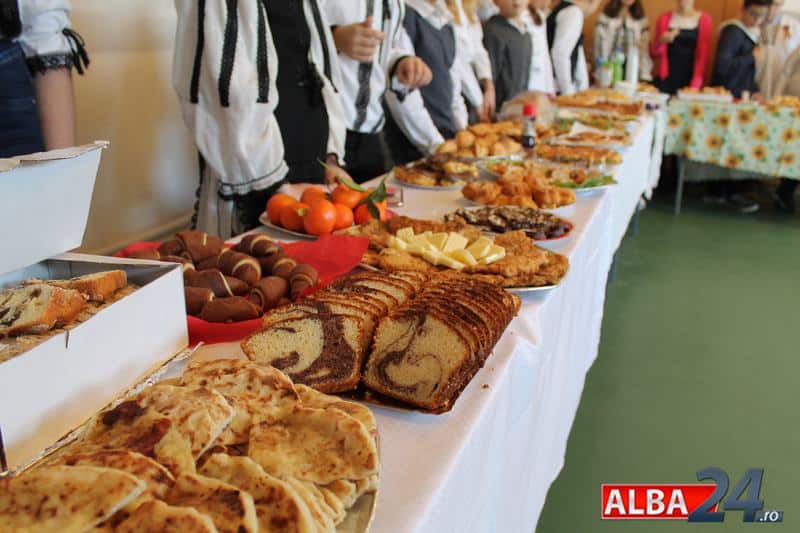 Mesele, frumos decorate de către copii, au fost încărcate cu aperitive, plăcinte, cozonaci, clătite, gogoși sau dulciuri de casă. Elevii au prezentat mâncărurile expuse, rețetele și ingredientele folosite pentru prepararea acestora.