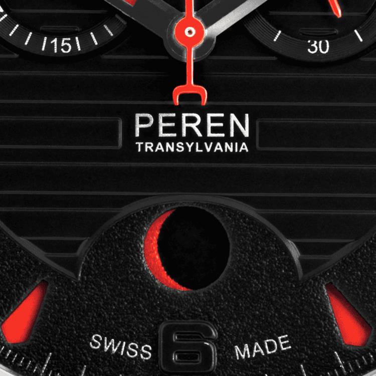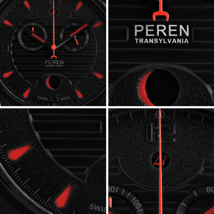 Ceasul are un indicator al fazelor lunii revoluționar, inspirat de fenomenul astronomic al Lunii Sângerii. Logoul duce cu gândul la o cataramă de curea, cu doi colți stilizați de vampir. Capacul cutiei ceasului a fost inspirat de reprezentarea dragonului de la casa din Sighișoara unde s-a născut Vlad Țepeș. Alte elemente speciale care definesc designul de inspirație transilvăneană sunt cele două hemicicluri cu găuri pentru indicarea datei și a fazelor lunii, ambele legate de castelele din Ardeal.