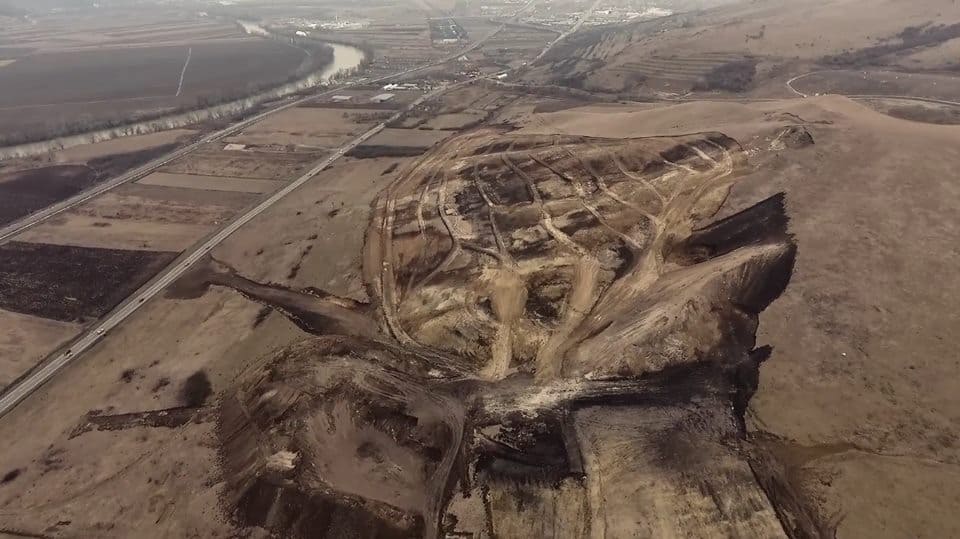 FOTO-VIDEO Lucrările pe lotul 1 al Autostrăzii Sebeș-Turda: versant instabil, în apropiere de Alba Iulia