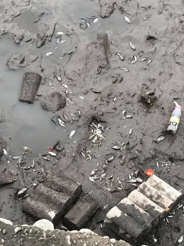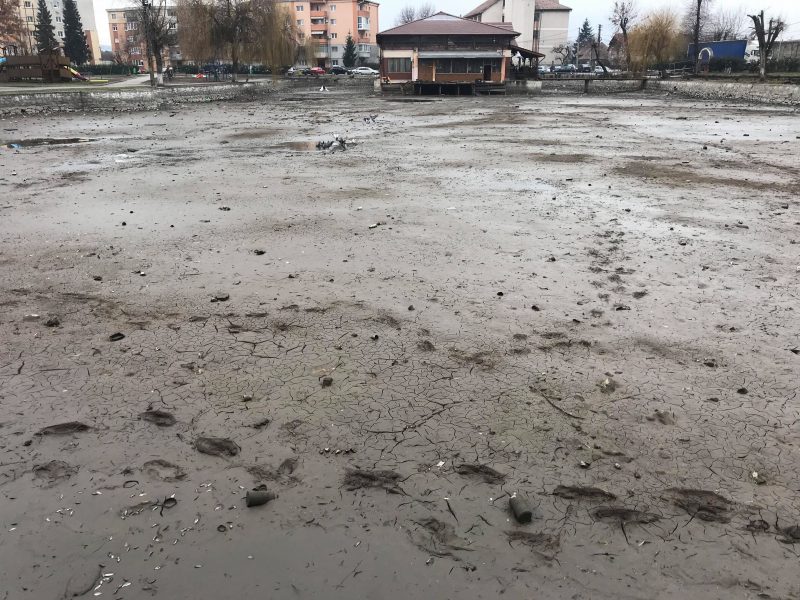 FOTO-VIDEO: Mii de pești morți găsiți după scoaterea apei din lacul aflat în Parcul Tineretului, în renovare la Sebeş