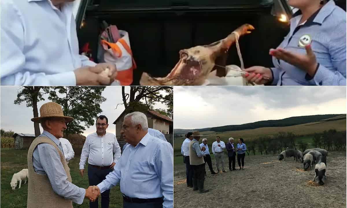 FOTO-VIDEO: Ministrul Agriculturii, la o fermă din Bucerdea Grânoasă. A mâncat jambon „din brișcă”