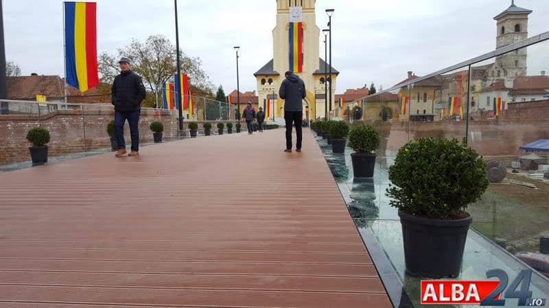 Unul dintre elementele principale ale lucrărilor, respectiv podul din sticlă, este gata și este iluminat. Mobilierul urban a fost ajuns și a fost montat, pavajele sunt finalizate și ele, iar accesul se poate face fără nicio problemă în aproape toate zonele, cu excepția locurilor unde se vor planta arbuști și flori.