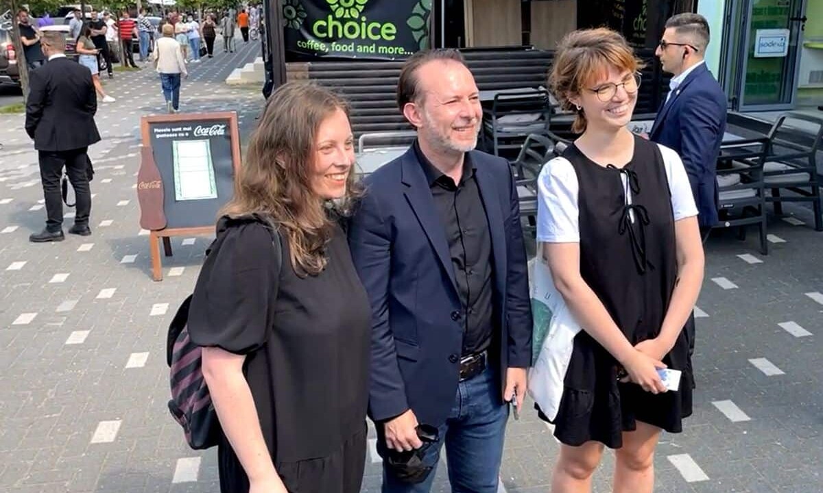 După câteva poze trase, Cîțu discută timp de câteva momente cu cele două fete iar apoi pleacă spre mașini.