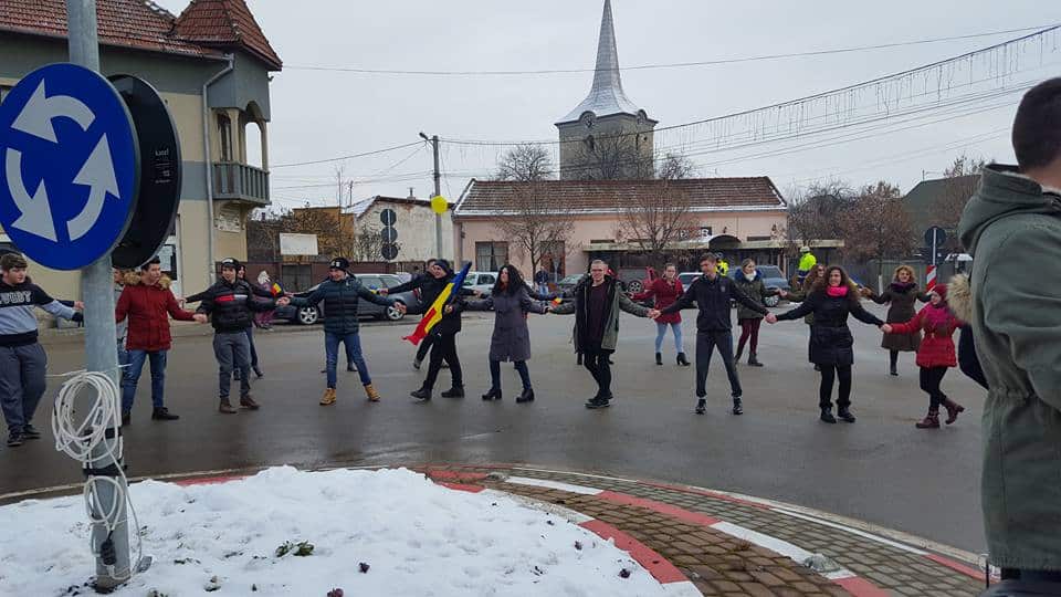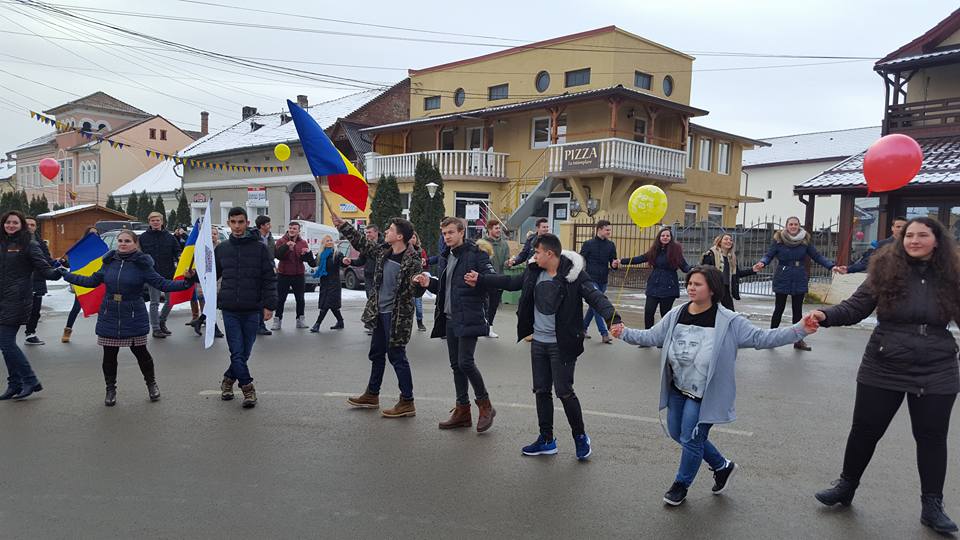 Evenimentul desfăşurat în stradă - pentru că o parte din evenimentele de acum 159 de ani au avut loc şi în stradă- a fost reprezentat de o alocuţiune a prof. de istorie, Nicoleta Cîmpean, urmat de o cuvântare a primarului Mirel Vasile Hălălai. Hora unirii a fost un moment la care au participat toţi cei prezenţi, însufleţiţi de versurile poeziei lui Vasile Alecsandri:”Hai să dăm mână cu mână, cei cu inima română!”.