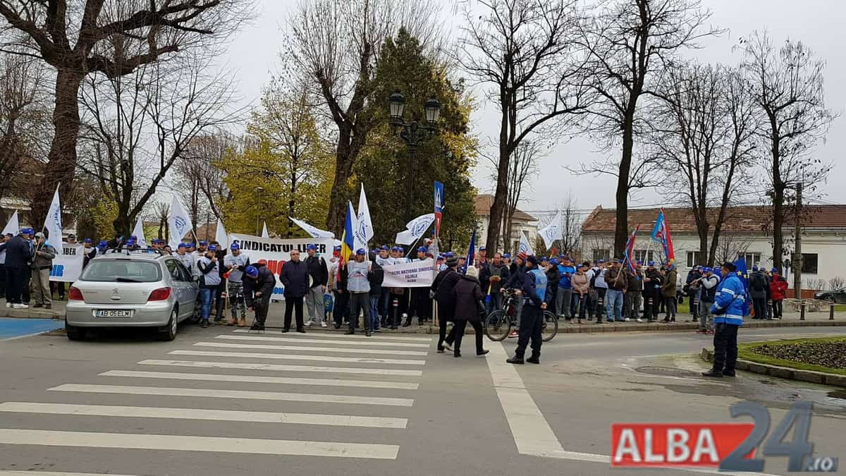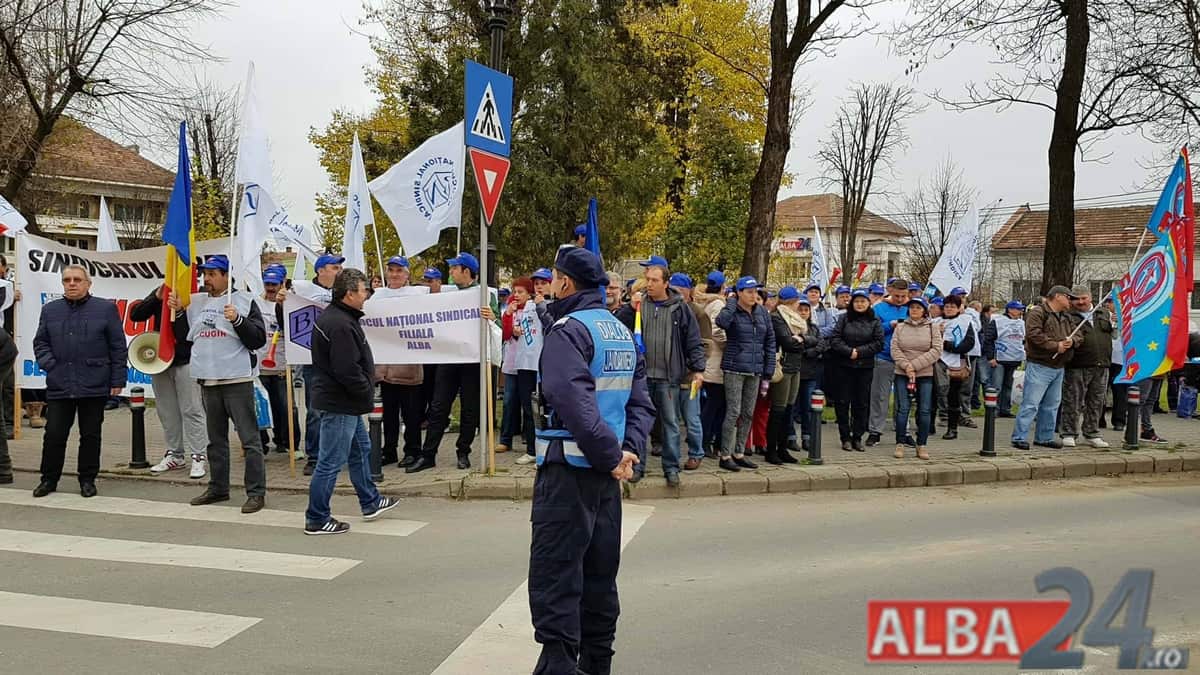 FOTO-VIDEO: PROTEST la Alba Iulia. Sindicaliştii cer din nou, în stradă, rezolvarea problemei salariilor