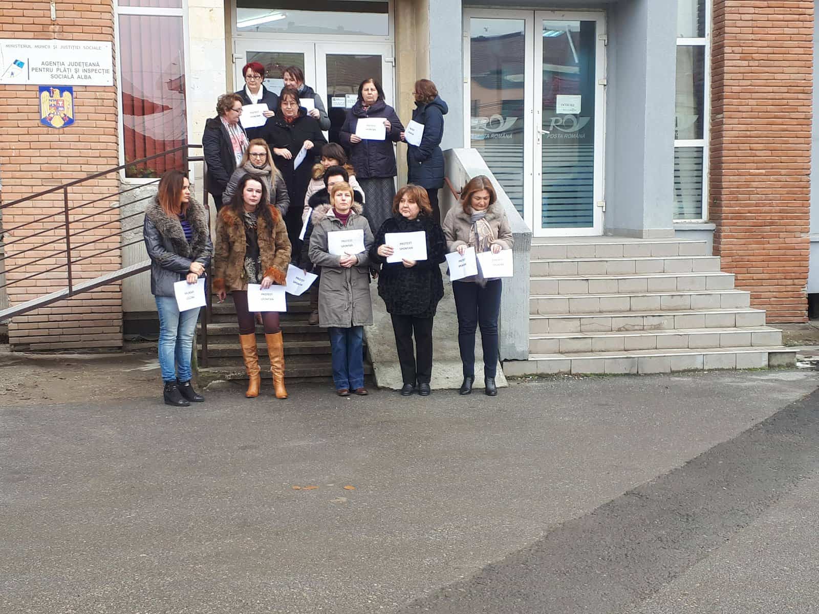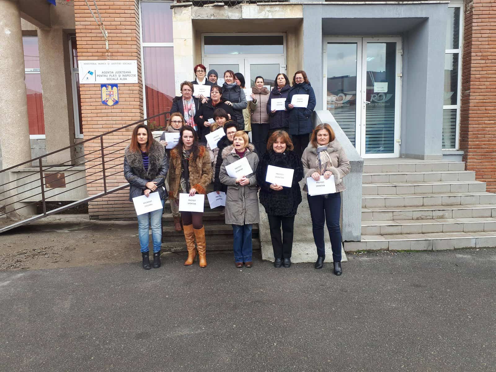 Angajații AJPIS Alba au protestat marți dimineața în fața instituției. Marea lor nemulțumire este legată de salariile care au crescut pentru majoritatea bugetarilor, cu excepţia lor.