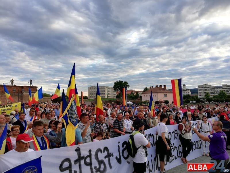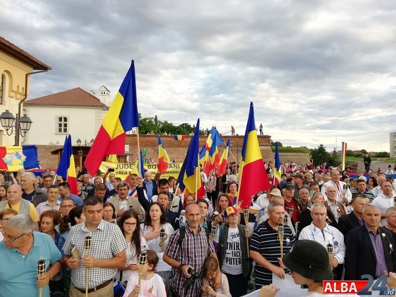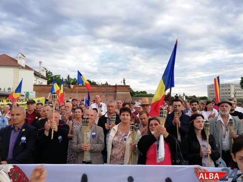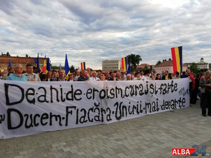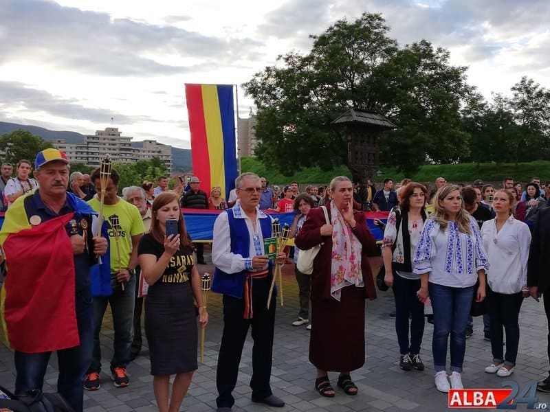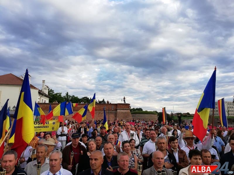 În jurul orei 21:20, cu torțe aprinse în mâini, sute de persoane au pornit în marș, pe jos, din fața Catedralei Reîntregirii din Alba Iulia, spre Teiuș.