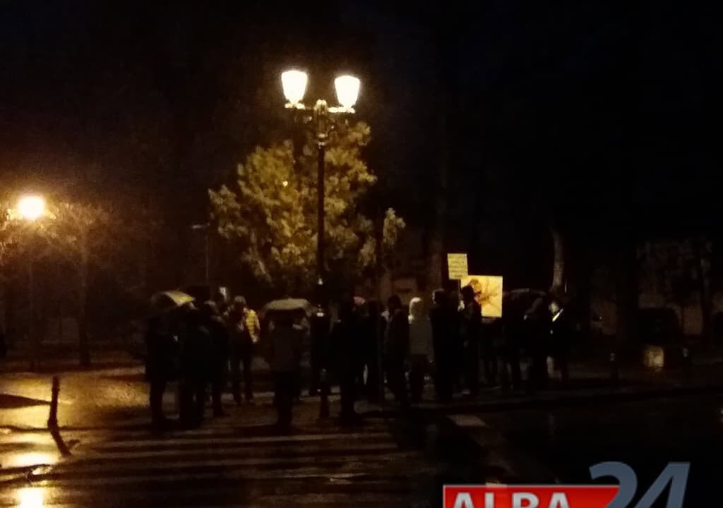 Până la ora 18.30 s-au adunat, în parcul din fața Prefecturii Alba, aproximativ 30 de oameni. Aceștia nu au scandat lozinci, însă au adus cu ei, pe lângă umbrele, și un steag tricolor și două pancarte. Pe una dintre pancarte era scris mesajul: „Am vrut să scriu <Noaptea ca hoții> dar aș fi jicnit hoții.”