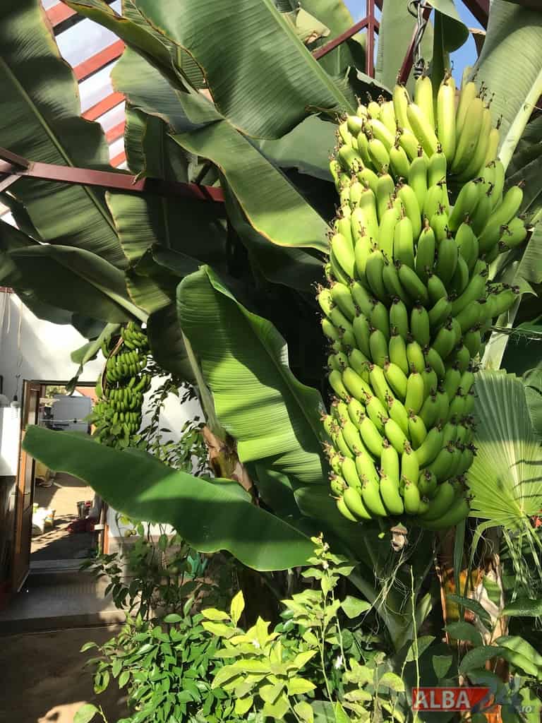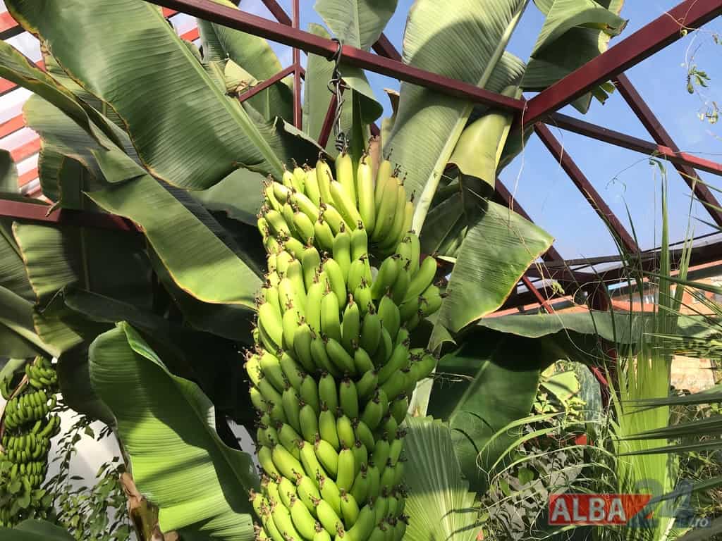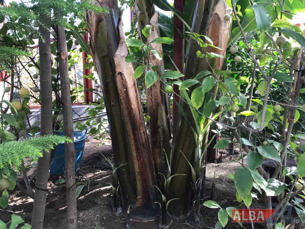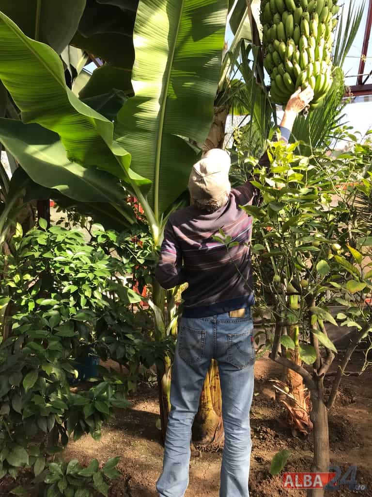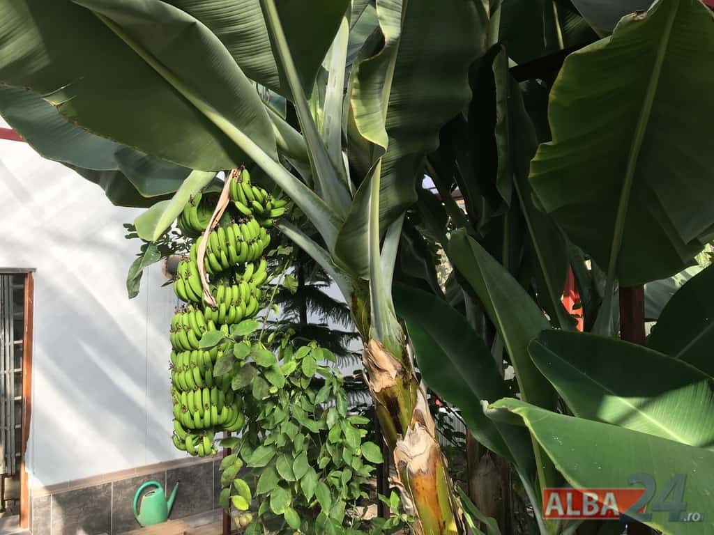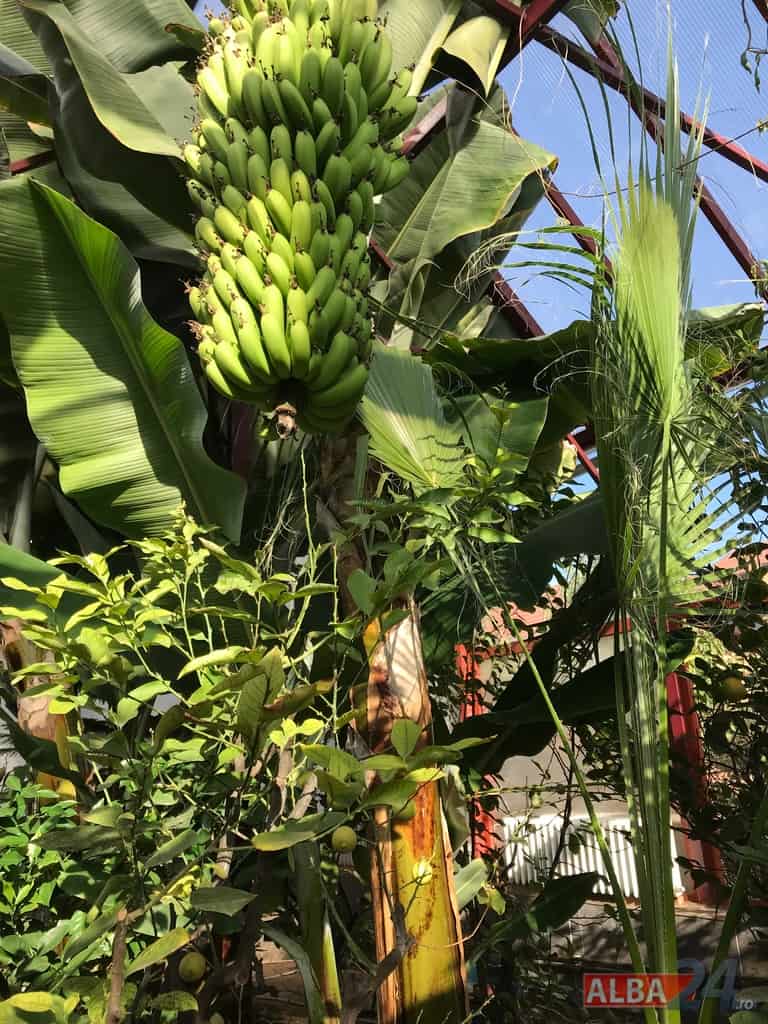 Ca într-o poveste fantastică, intrarea într-o mică anexă a gospodăriei, care pe dinafară nu zice mare lucru, te „teleportează” într-o pădure tropicală în miniatură. Doi bananieri imenși, de peste 6 metri fiecare, înconjurați de lămâi, portocali, smochini, toți cu roade pe crengi. Fiecare din cei doi bananieri au câte un ciorchine de banane încă verzi cântărind, după estimarea proprietarului, peste 40 de kg fiecare.