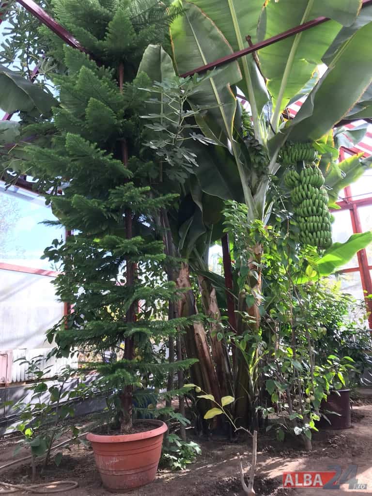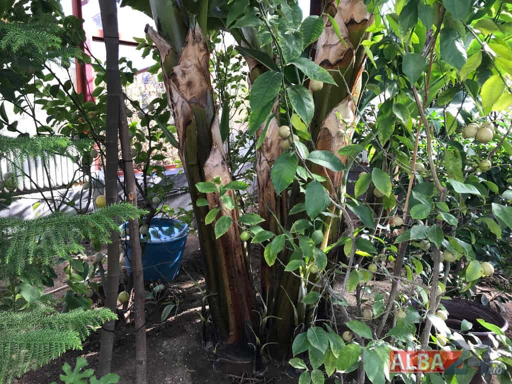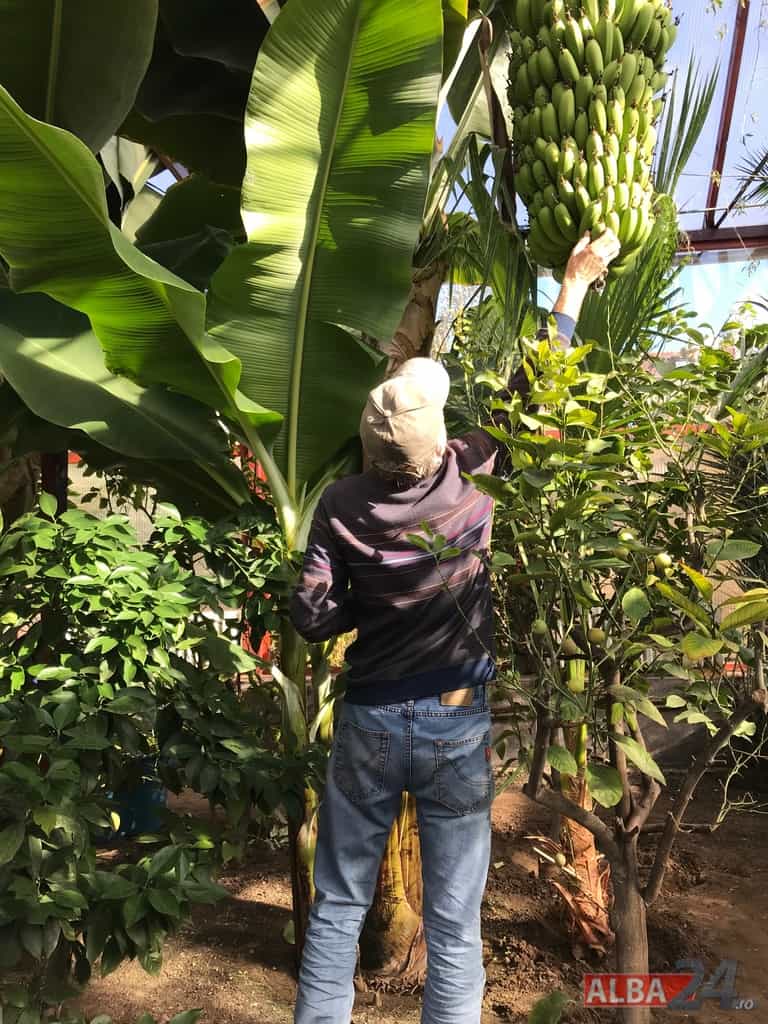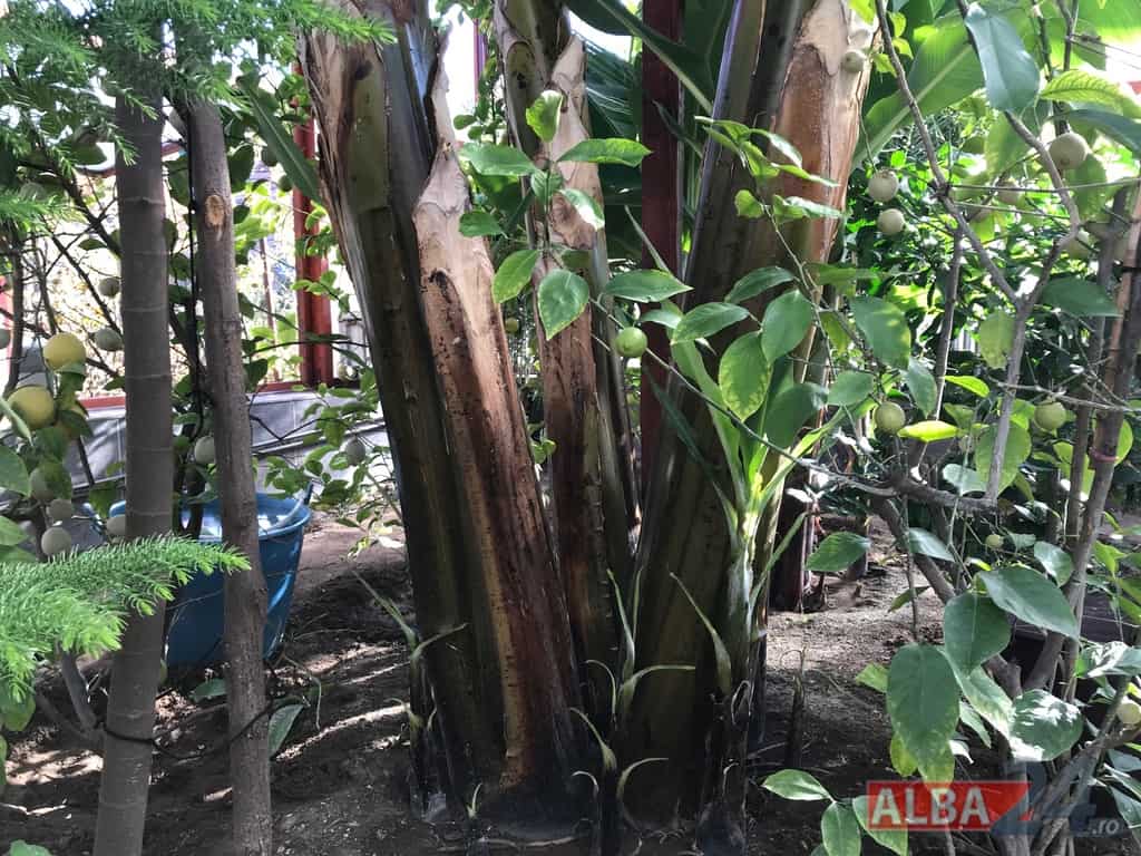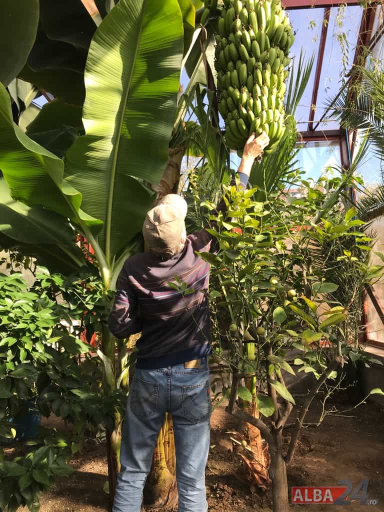 Ca într-o poveste fantastică, intrarea într-o mică anexă a gospodăriei, care pe dinafară nu zice mare lucru, te „teleportează” într-o pădure tropicală în miniatură. Doi bananieri imenși, de peste 6 metri fiecare, înconjurați de lămâi, portocali, smochini, toți cu roade pe crengi. Fiecare din cei doi bananieri au câte un ciorchine de banane încă verzi cântărind, după estimarea proprietarului, peste 40 de kg fiecare.