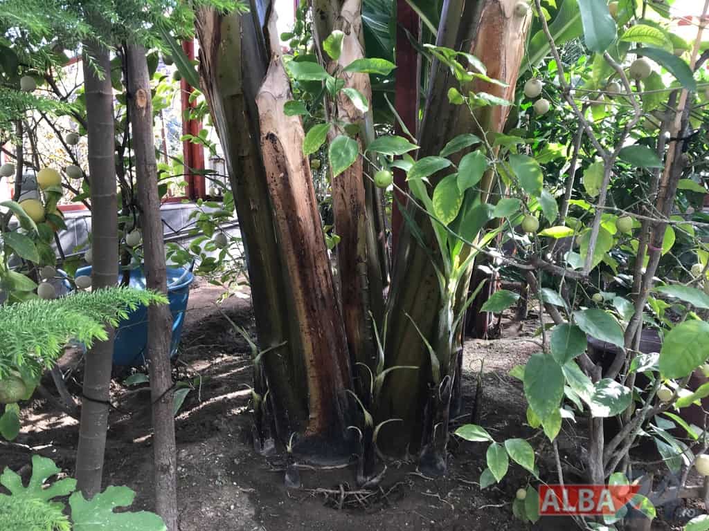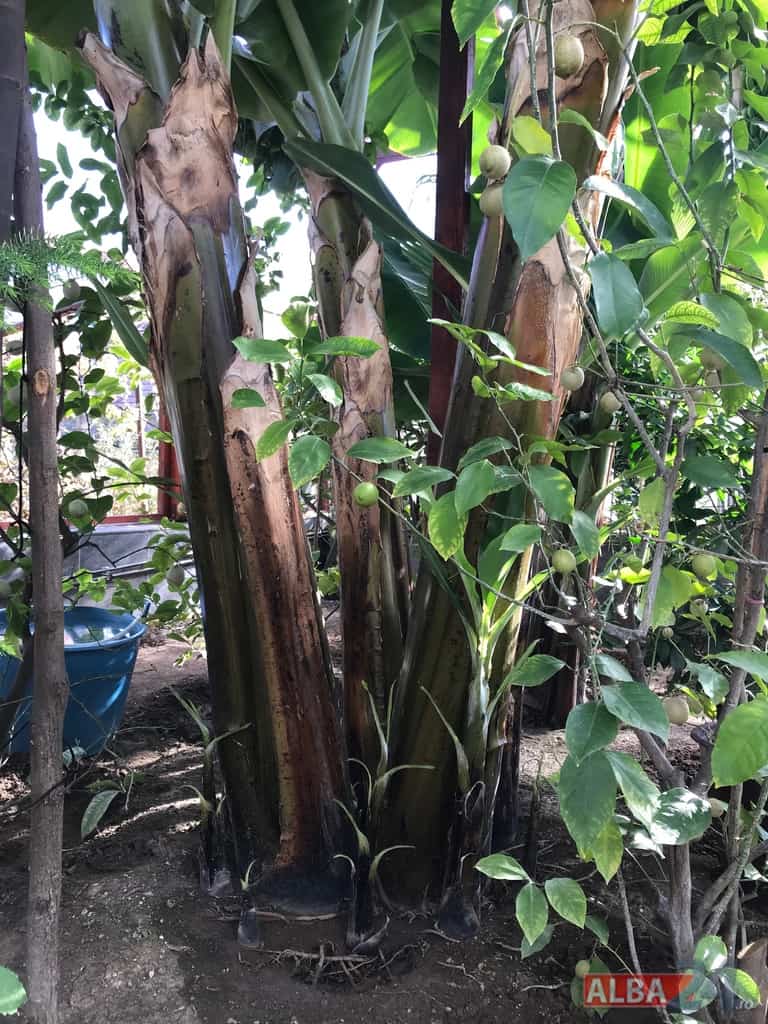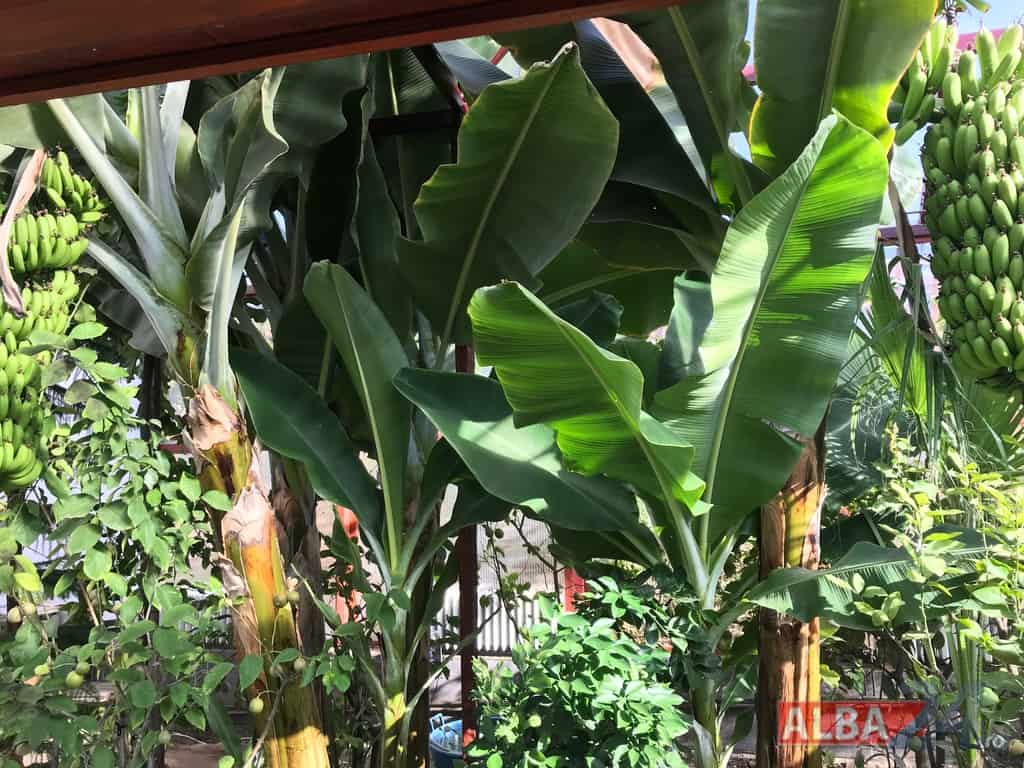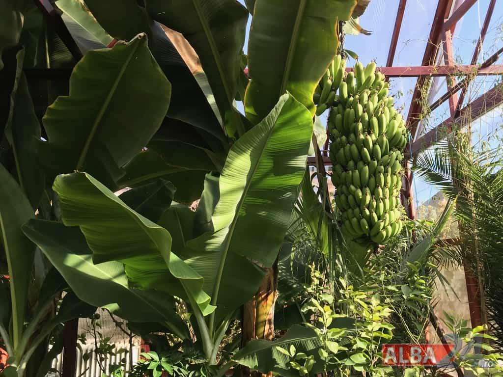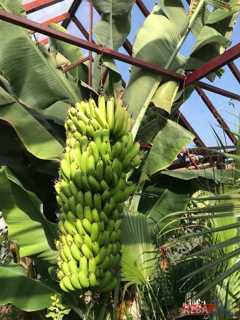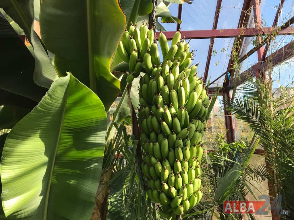 Ca într-o poveste fantastică, intrarea într-o mică anexă a gospodăriei, care pe dinafară nu zice mare lucru, te „teleportează” într-o pădure tropicală în miniatură. Doi bananieri imenși, de peste 6 metri fiecare, înconjurați de lămâi, portocali, smochini, toți cu roade pe crengi. Fiecare din cei doi bananieri au câte un ciorchine de banane încă verzi cântărind, după estimarea proprietarului, peste 40 de kg fiecare.
