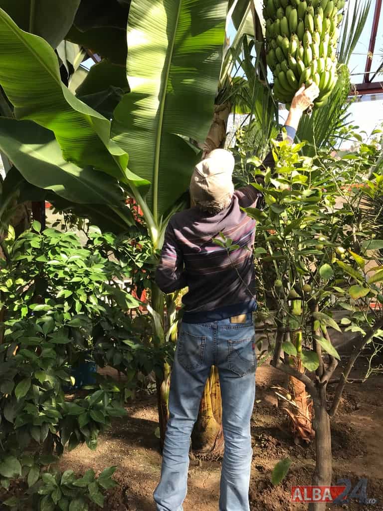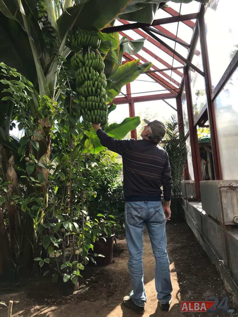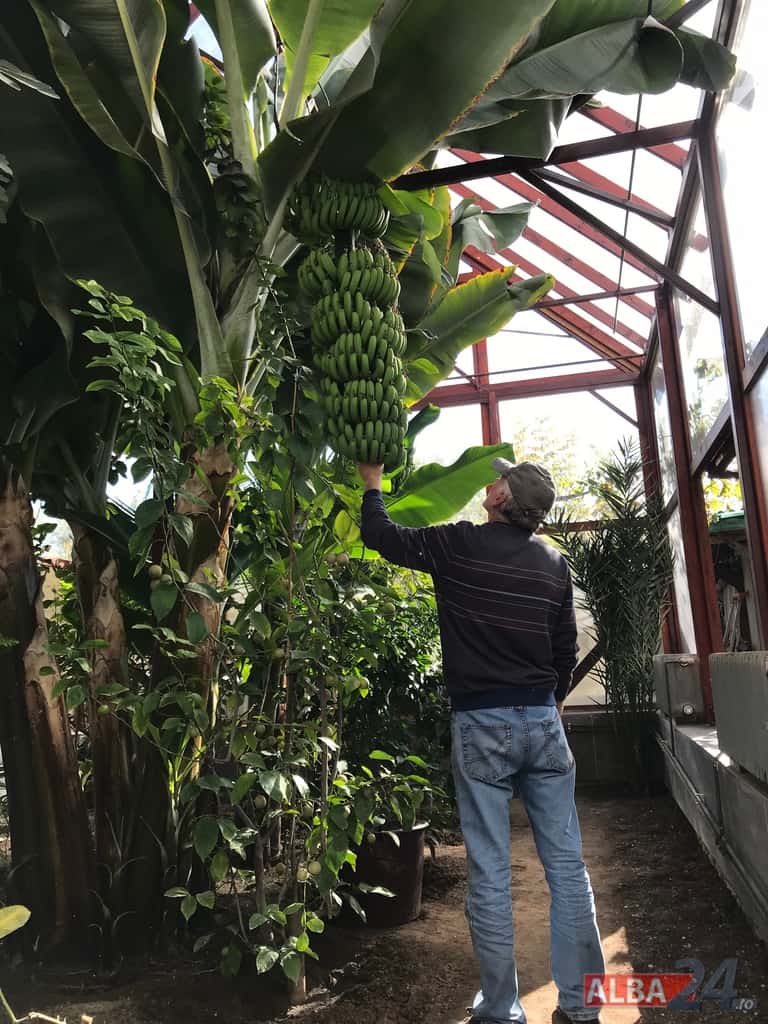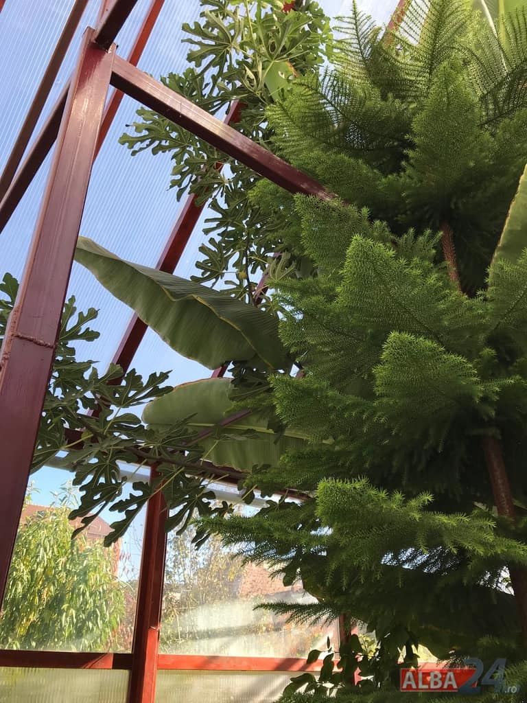 FOTO-VIDEO: Sera cu minuni din Alba Iulia. Bananieri uriași, portocali, lămâi și smochini într-o seră artizanală îngrijită de „domnul Nelu” pentru nepoți