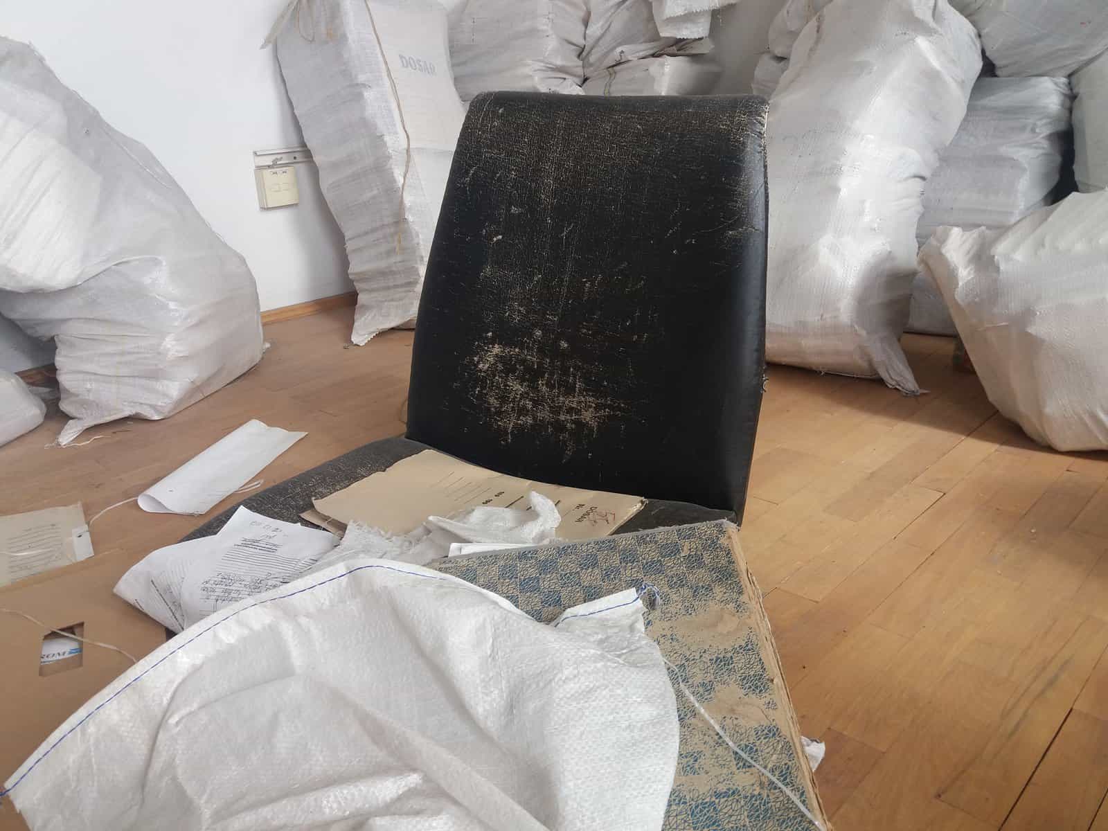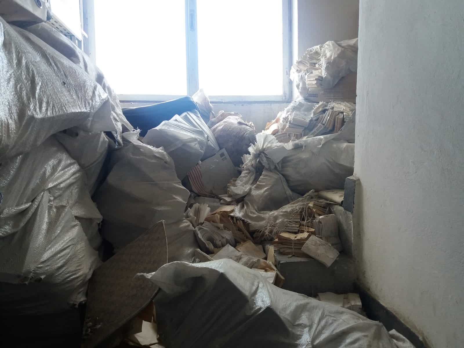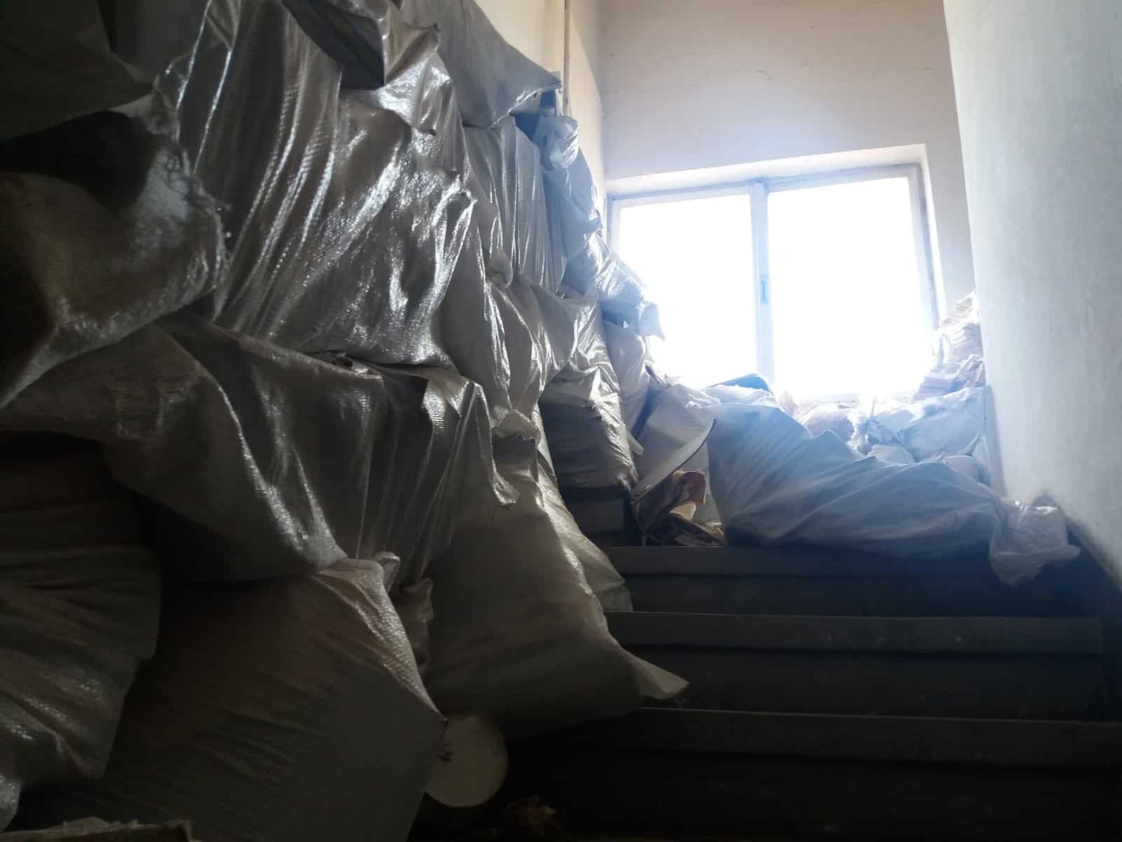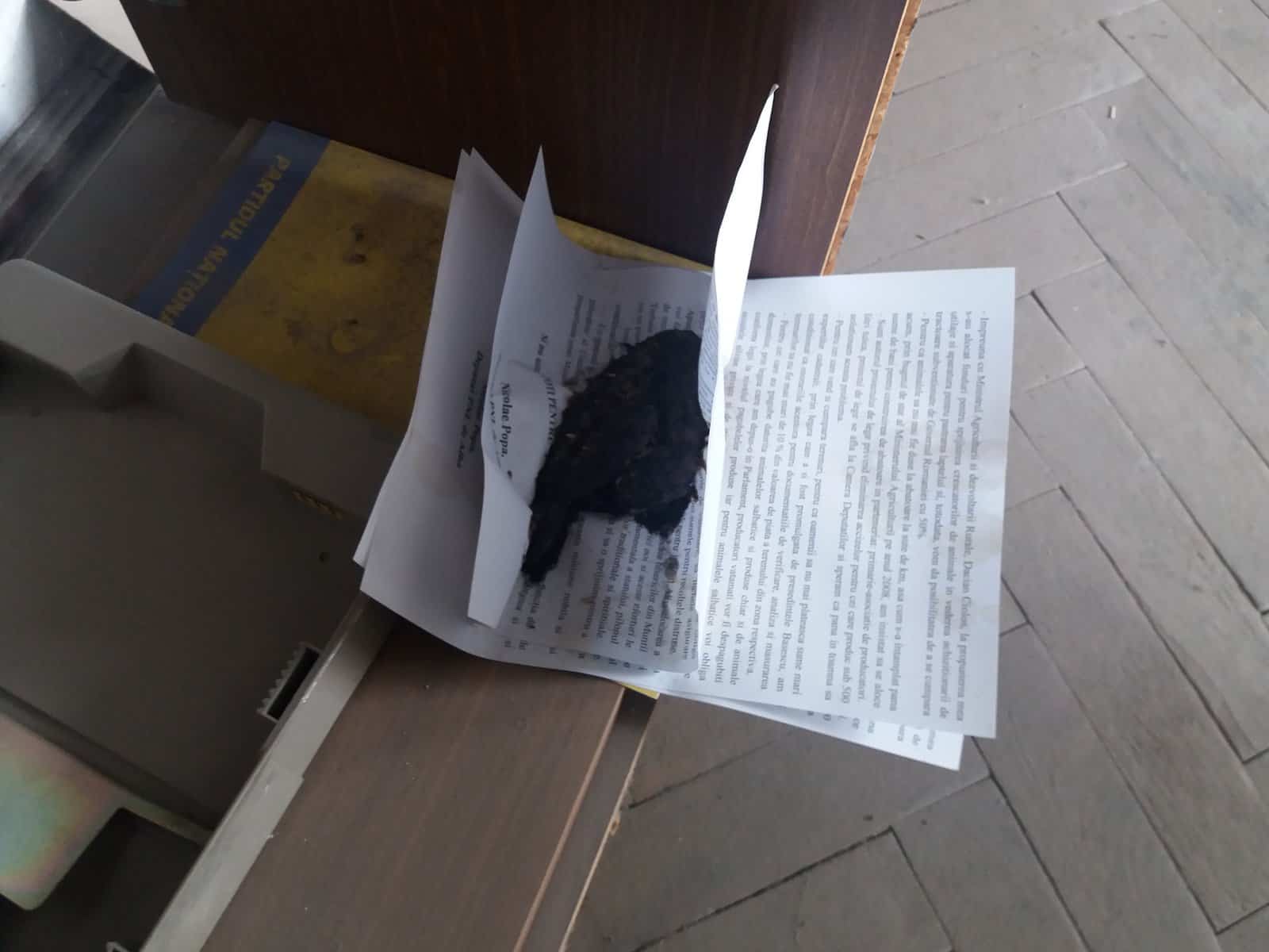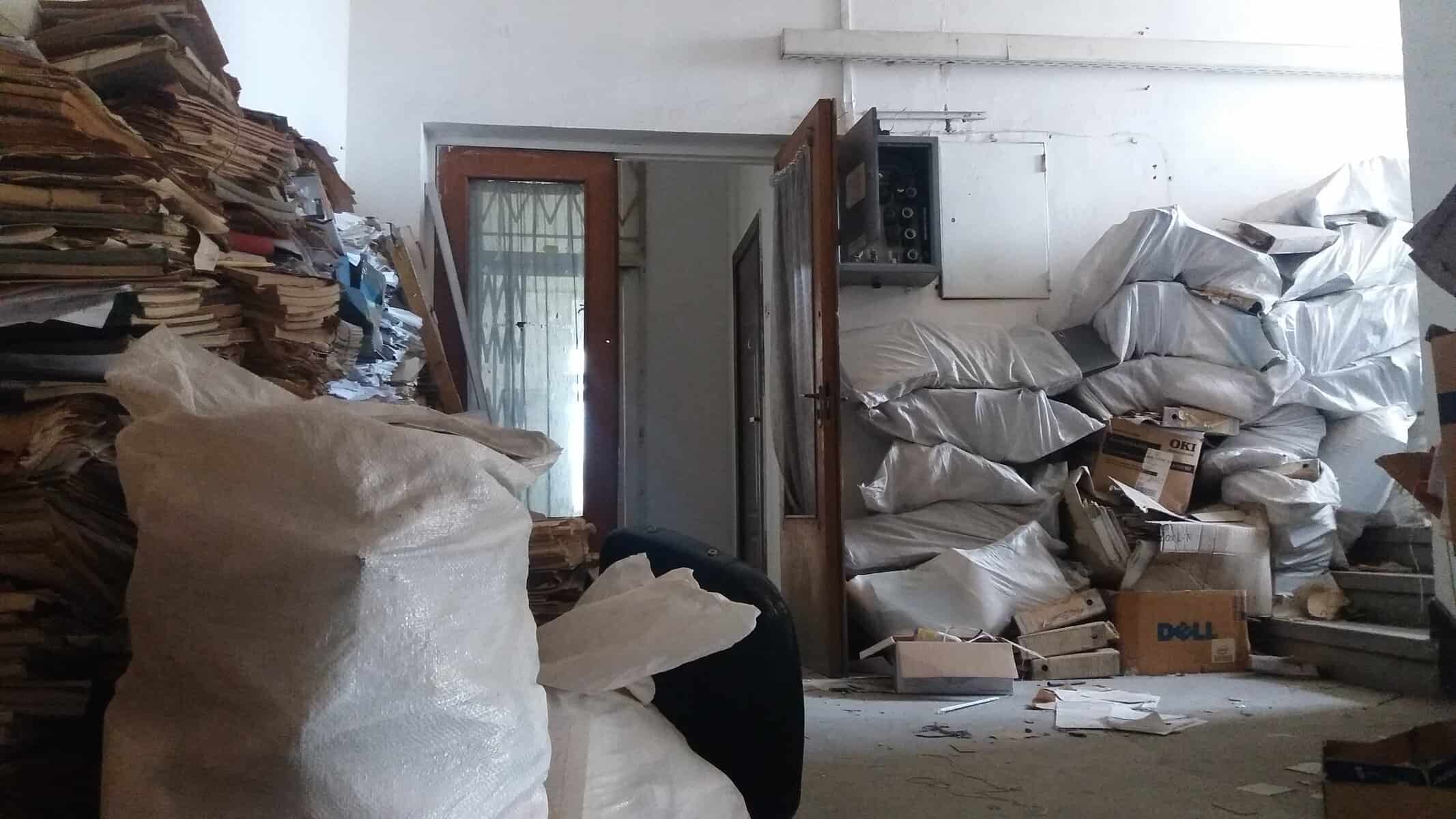 Dacă imaginile arată degradarea extremă a spațiului, mirosul este pe măsură. Fecale, mâncare putrezită, haine abandonate, resturi de mobilier și saci întregi de maculatură, peste care tronează stingheră și rușinată stema României, atârnată într-un cui... cam așa arată aceste spații, abandonate în chiar centrul orașului.
