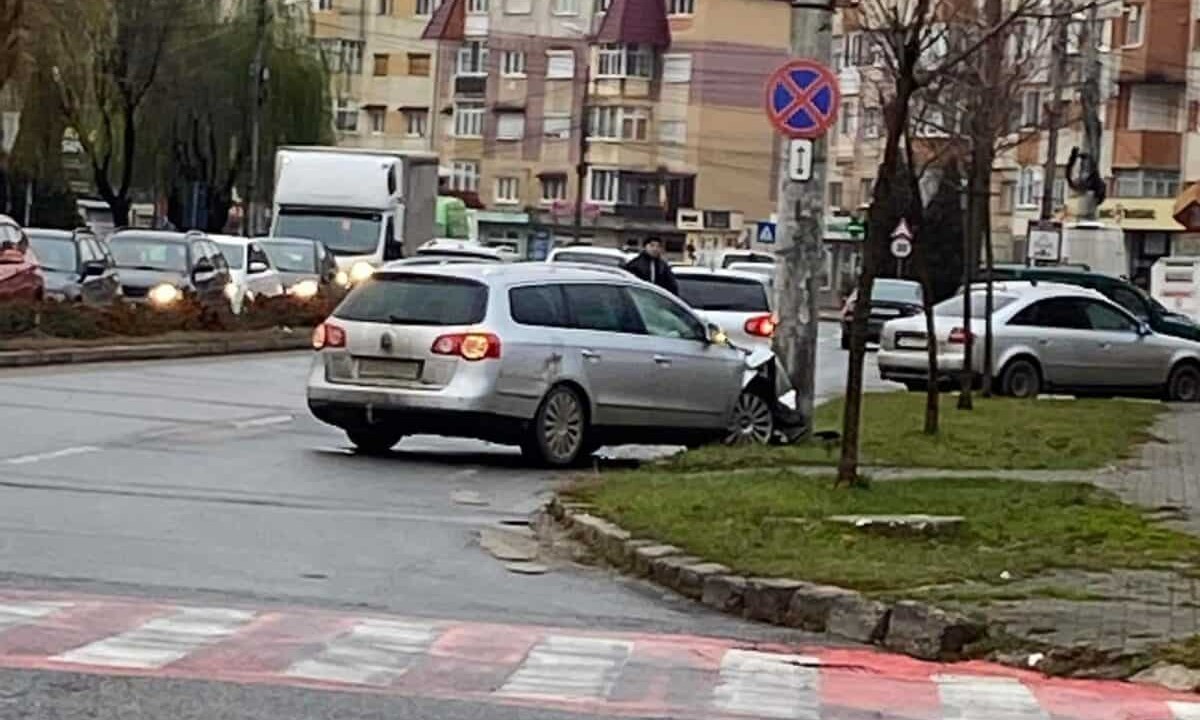 UPDATE: Potrivit unor cetățeni, șoferul ar fi ajuns cu mașina în stâlp după ce ar fi evitat un alt autoturism.