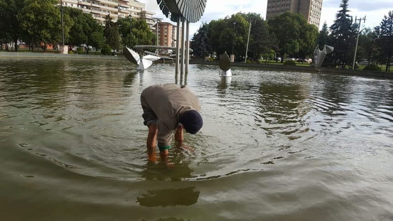 FOTO-VIDEO ȘTIREA TA: Căutător de comori în fântâna arteziană din Parcul Unirii