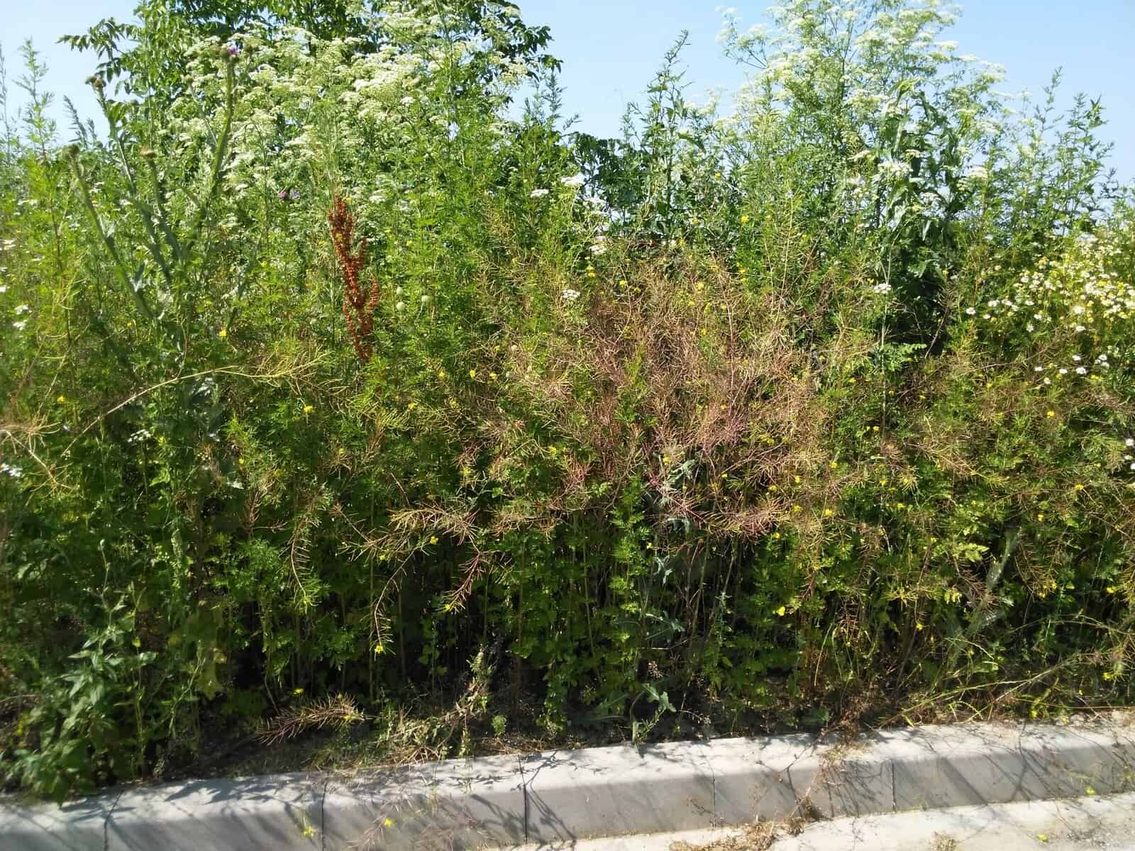 Șanțurile de pe marginea drumului, pe care ar trebui să se scurgă apa, găzduiesc exemplare gigant din aceste specii. De exemplu, un ciuline (carduus nutants) trece de trei metri, lăsând mut de uimire orice trecător. Păstrând proporțiile, este vorba despre un baobab al ciulinilor. Localnicii sunt ceva mai obișnuiți, însă sunt atenți ca atunci când își plimbă copii, aceștia să nu facă pasul din drum și să se piardă în jungla deasă. Este vorba practic despre un fel de parc dendrologic pe dos, unde turiștii și localnicii pot vedea gratis cele mai comune specii de plante dăunătoare care cresc în climatul temperat continental de la noi.