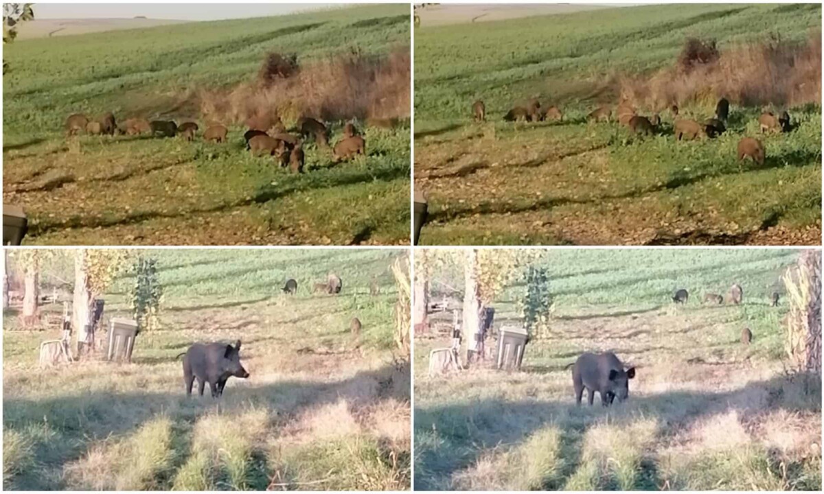 FOTO-VIDEO ȘTIREA TA: Turmă de porci mistreți, surprinsă pe raza localității Răhău. Nu se sperie de oameni