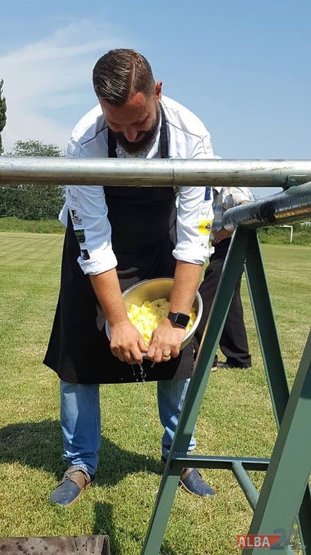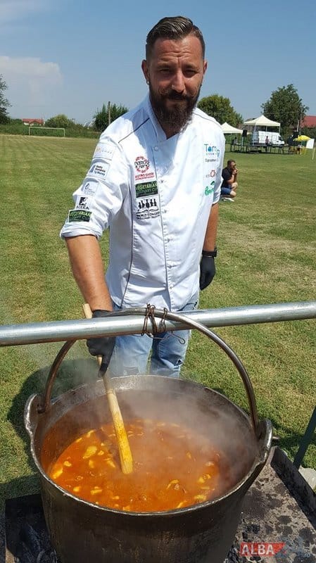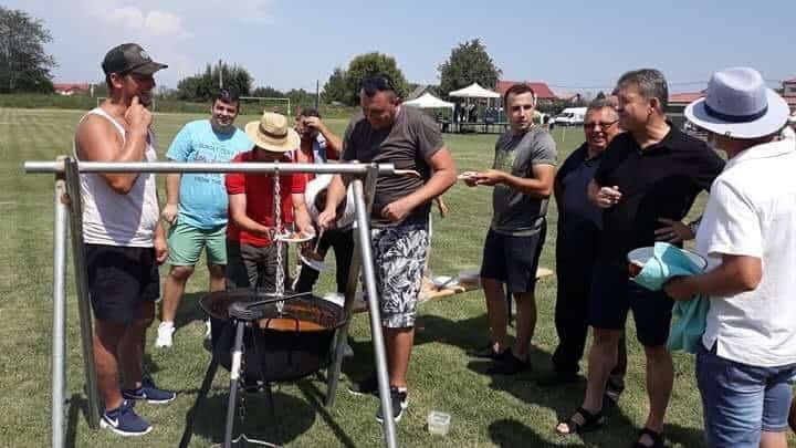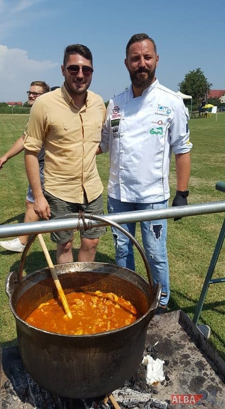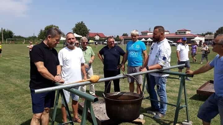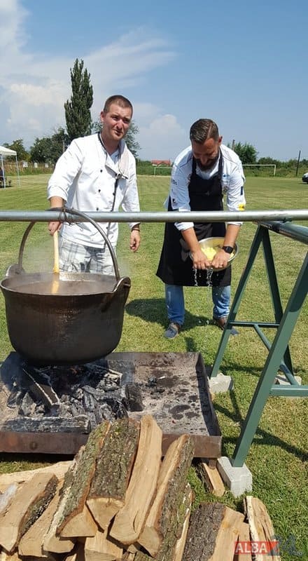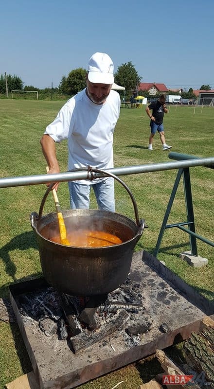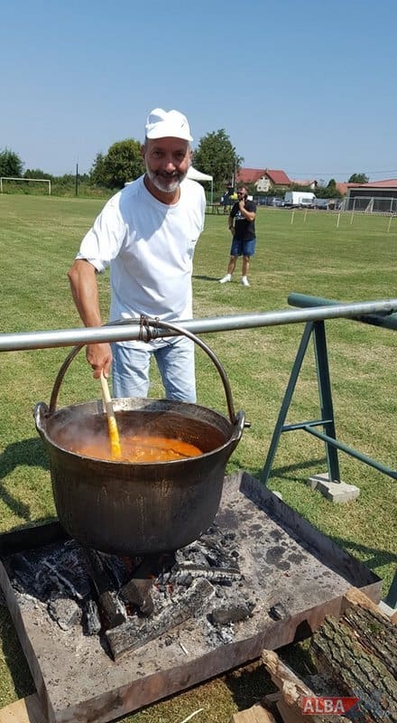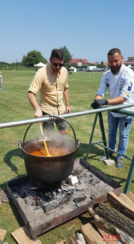FOTO-VIDEO: Strategii politice cu gust de gulaș. Liberalii din Alba și-au mutat bucătăria pe stadionul de la Oarda de Jos