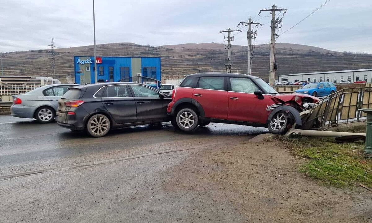Potrivit martorilor șoferul uneia dintre mașini nu s-a asigurat la trecerea pe a doua bandă și a intrat în autoturismul Mini Cooper-ul care a fost aruncat în parapet.