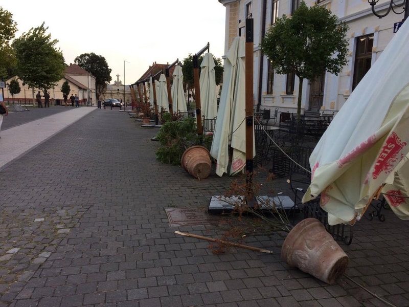 Terasele din Cetatea Alba Carolina au fost măturate. Umbrelele și scaunele au fost aruncate în toate direcțiile, oamenii aflați la acea oră în zonă reușind să se adăpostească pe unde au apucat. Majoritatea lor au spre mașinile cu care veniseră, unde au așteptat calmarea vântului.