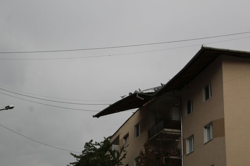 Pe strada Doinei din localitate, un acoperiș al unui bloc de patru etaje s-a desprins și a rămas agățat de marginea blocului. Reprezentanții Serviciului Voluntar pentru Situații de Urgență Cugir au intervenit pentru îndepărtarea pericolului, iar Poliţia Rutieră a întrerupt temporar circulația în zonă. Din fericire, nimenii nu a fost rănit.