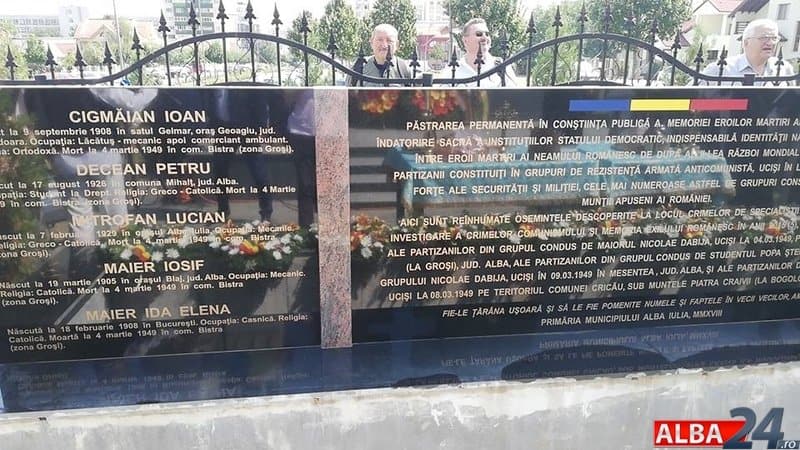 Joi, 23 august, în curtea Catedralei Unității Naționale au fost reînhumați cei 10 luptători anticomuniști care au căzut ucişi în timpul unor confruntări armate purtate în anul 1949 cu autorităţile statului comunist pe teritoriul localităţilor Bistra, Mesentea şi Cricău. Trupurile victimelor au fost descoperite în perioada anilor 2015-2017, în urma unor acţiuni de teren organizate şi desfăşurate de IICCMER.