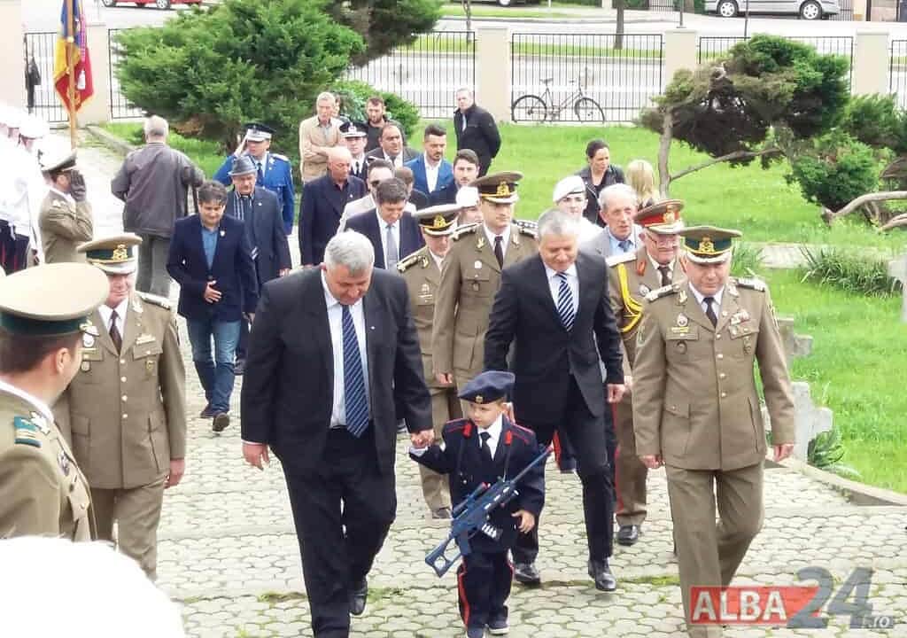 Băiețelul în vârstă de 4 ani din județul Mureș a stat alături de prefectul Dănuț Hălălai, iar la finalul ceremoniei a defilat alături de elevii Colegiului Militar Național „Mihai Viteazul” din Alba Iulia.