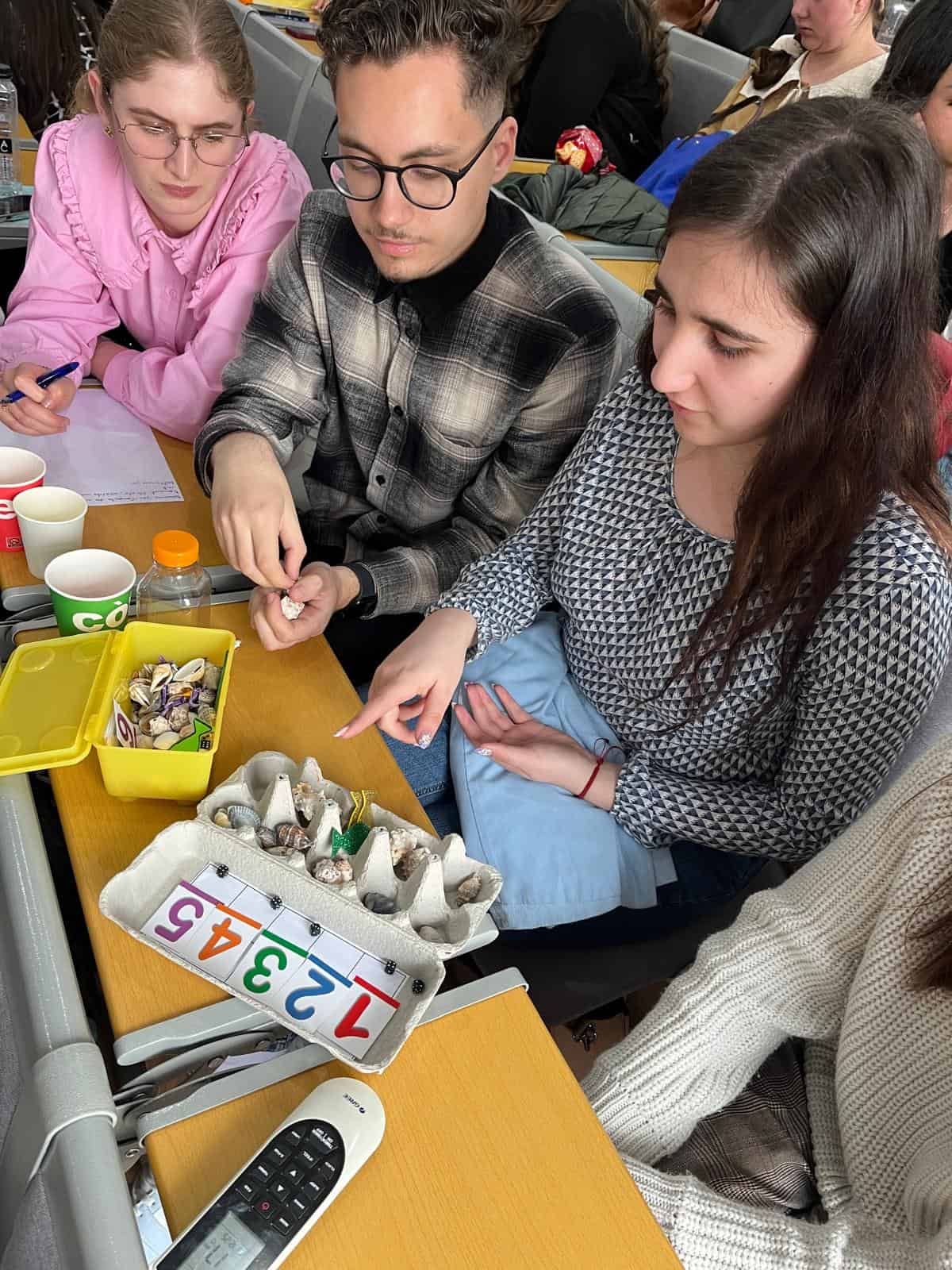 Cu ajutorul materialelor diverse puse la dispoziție de educatoarele grădiniței, studenții au lucrat în echipe și au conceput și realizat jocuri creative pentru activități: Sticle senzoriale și Cufere cu comori, în care au încercat să integreze sarcini din mai multe domenii experiențiale.