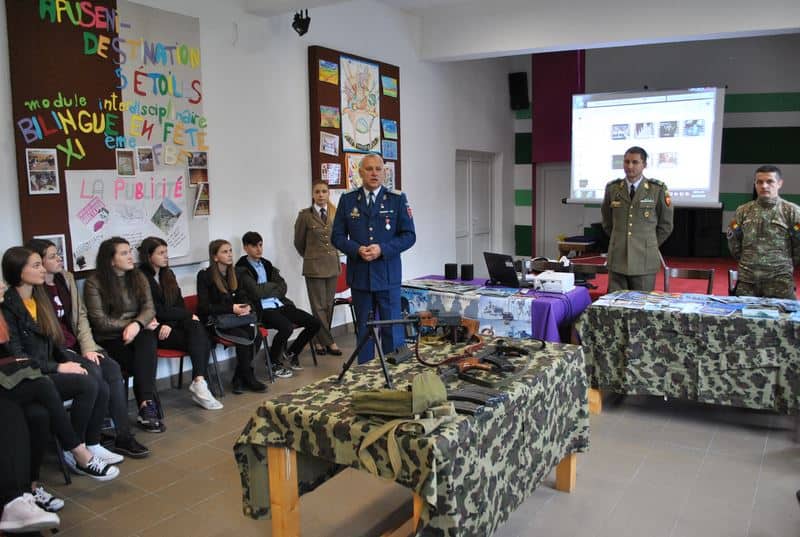 FOTO „Ziua Armatei României în școli”. Prezentarea ofertei educaționale a MApN, la Colegiul „Avram Iancu” din Câmpeni