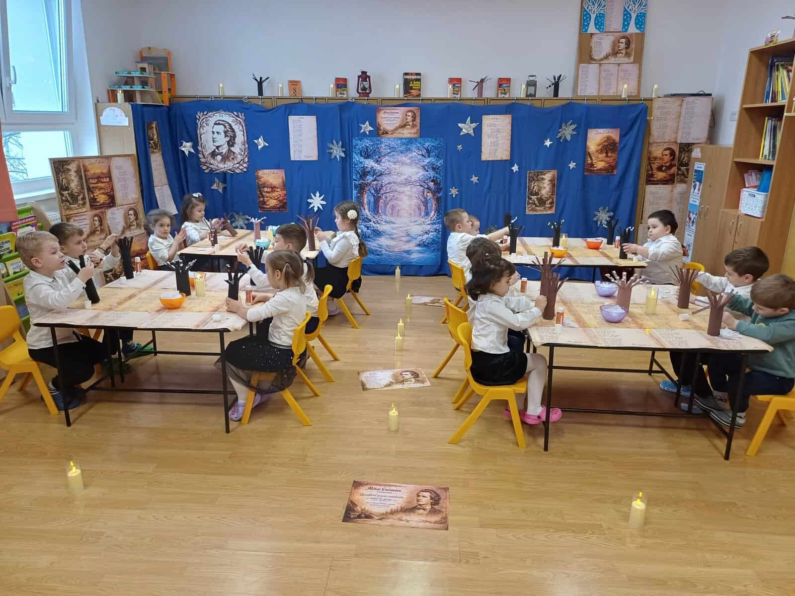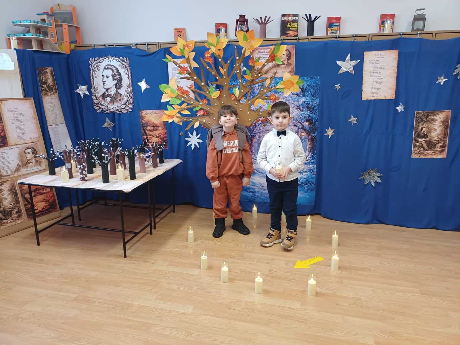 Într-un decor fermecat – cărți, manuscrise, lumânări, chipuri ale poetului, Teiul Sfânt și codrul liniștit, copiii au recitat cu emoție versurile „Ce te legeni…” și „Revedere”, iar cântecul lor a legănat atmosfera ca o adiere de ianuarie.