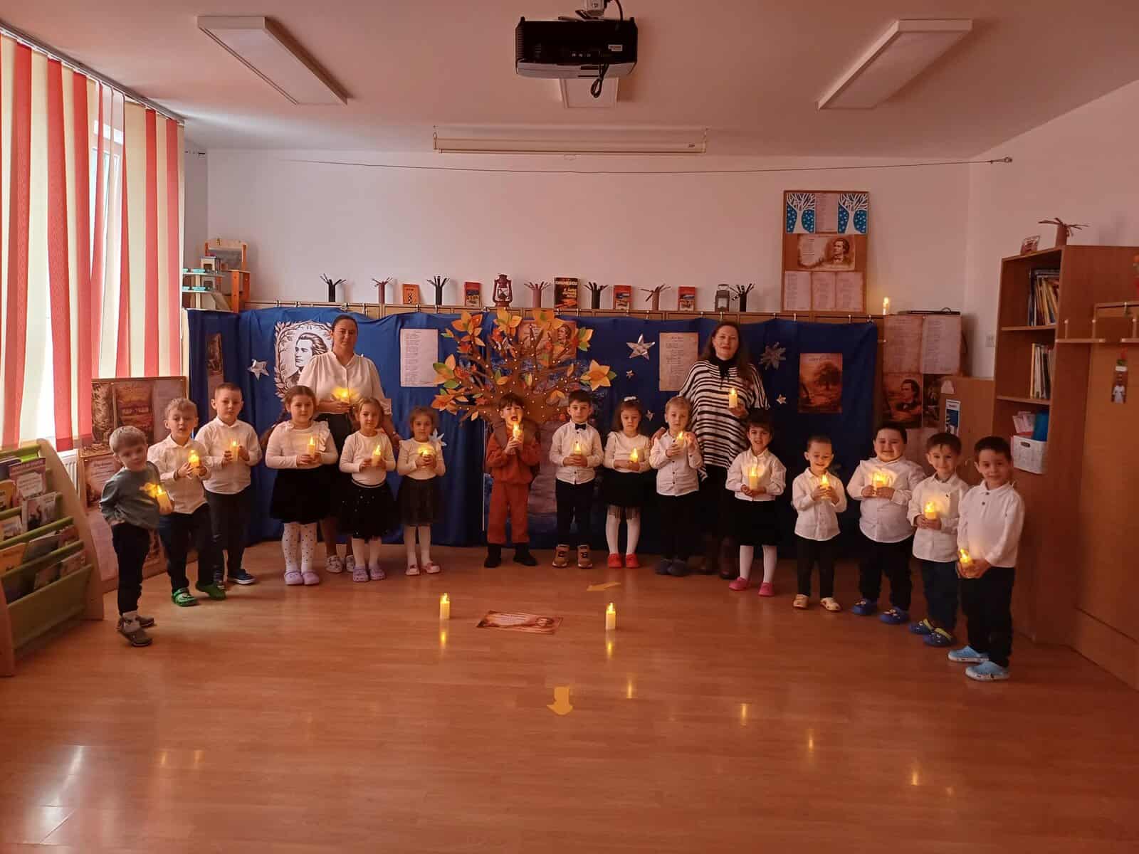 Grupa Mijlocie „Fluturașii”, alături de profesoare pentru educație timpurie Paraschiva Bâgiu și Andreea Ioana Morariu, a deschis poarta spre tărâmul culturii, celebrând Ziua Culturii Naționale și 176 de ani de la nașterea lui Mihai Eminescu.
