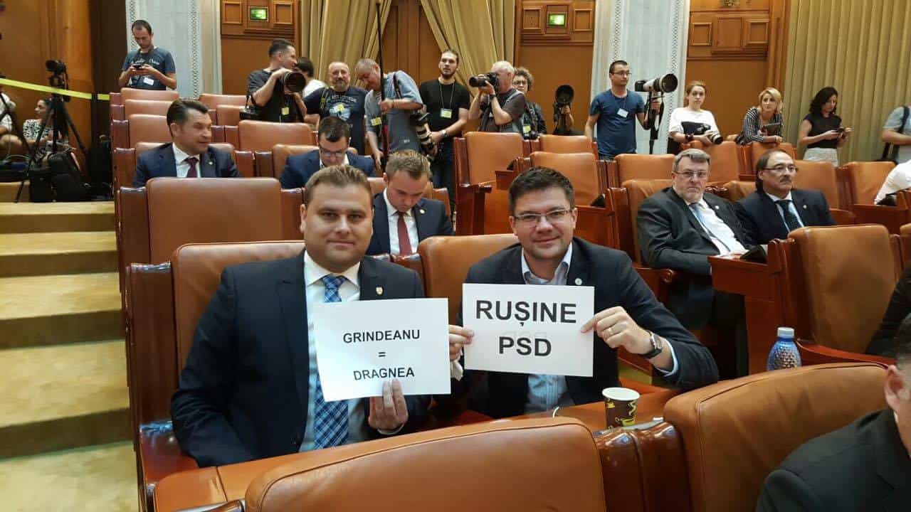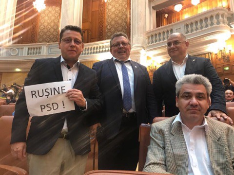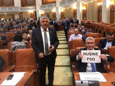 FOTO: Ziua în care PSD este contra PSD. Mesajul afișat de o parte dintre parlamentarii din Alba, la dezbaterea moțiunii de autocenzură: ”Rușine PSD!”