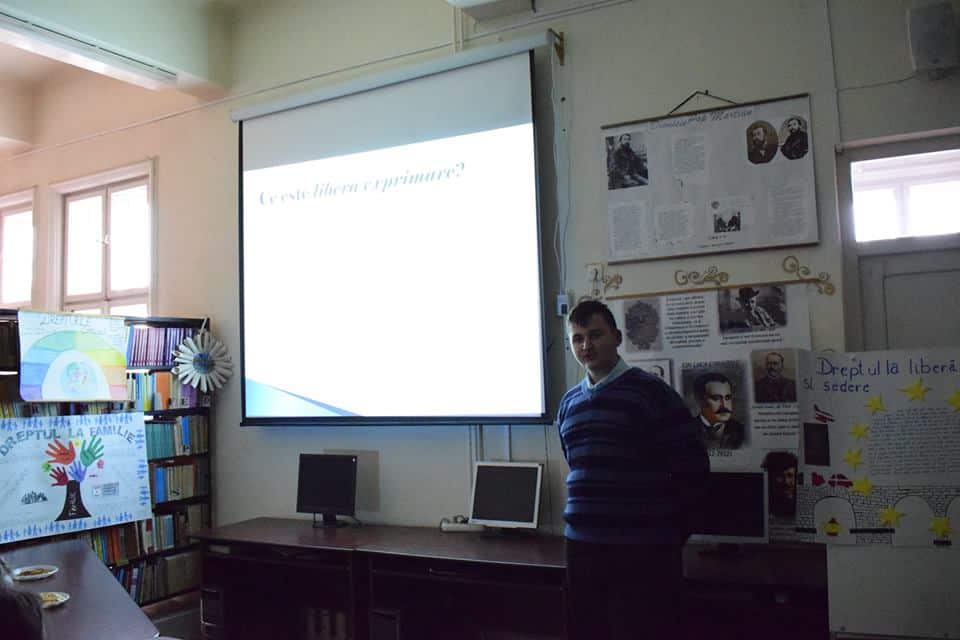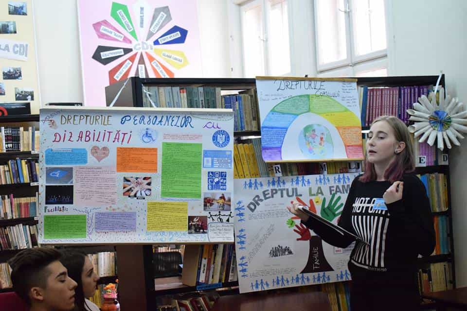 Proiectul s-a derulat în perioada 4-8 decembrie 2017 în cele două instituții de învățământ partenere și a presupus mai multe activități: realizarea unui spațiu expozițional cu planșe informative despre drepturile omului și premierea celor mai reușite planșe pe școală (locurile I, II, III) finalizate cu concursul între cele două școli, realizarea unor materiale informative (flyere și ecusoane) despre drepturile omului și distribuirea lor în pauze în unitățile de învățământ; miniexpoziție cu cărți și materiale diverse despre drepturile omului pe toată derularea proiectului în Centrele de Documentare și Informare.