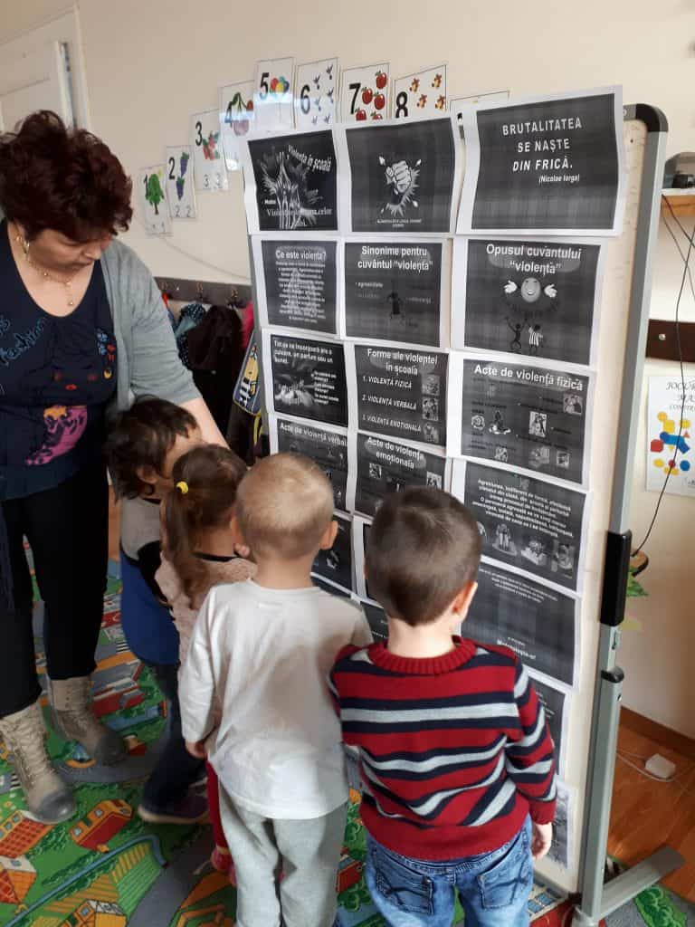 „Scopul activității a fost de educare a elevilor în spiritul armoniei, dragostei, toleranței și solidarității precum și de identificare și însușire a unor modalități de <exmatriculare> a violenței din rândul lor. Activitatea s-a desfășurat la nivel de grădiniță fiind organizată la inițiativa d-nelor educatoare. În final au purtat discuții și dezbateri pe tema <Să exmatriculăm violența>, elevii fiind dirijați să identifice modalități de eliminare a violenței din viata lor”, a transmis educatoarea Delia Lupean.