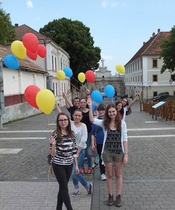 FOTO: Ziua internaţională YouthBank, sărbătorită şi la Alba Iulia. Baloane colorate pe cerul Cetăţii Alba Carolina, cu nume ale oraşelor YB din lume