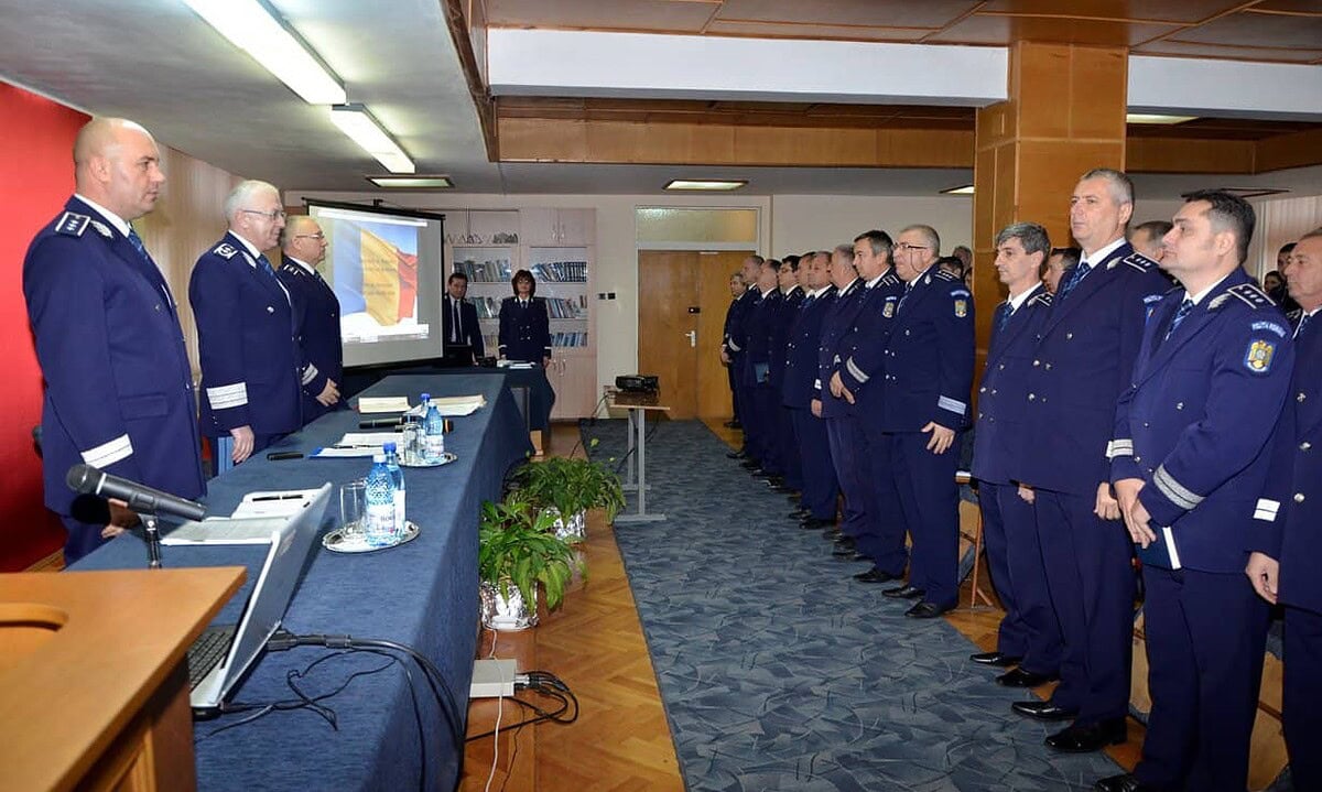 În deschidere a fost intonat Imnul Naţional şi evocat momentul Marii Uniri, iar şeful inspectoratului a prezentat mesajul vicepremierului pentru securitate naţională, ministrul Afacerilor Interne Gabriel Oprea, cu ocazia Zilei Naţionale a României.