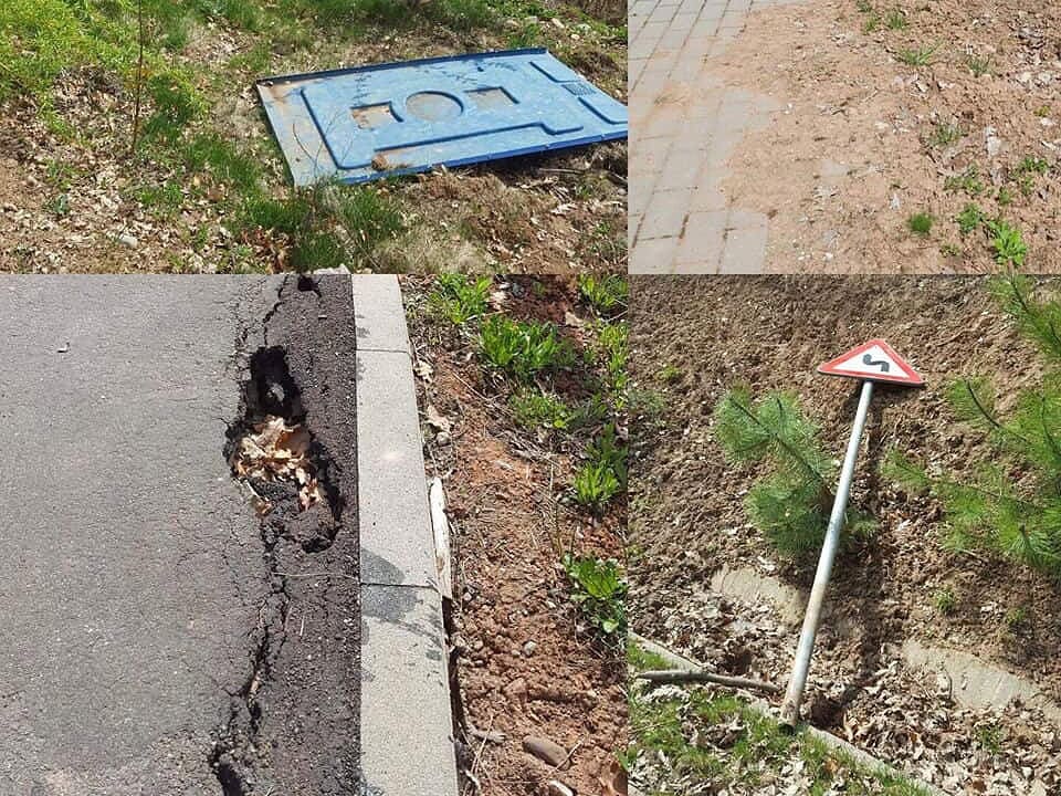 Zeci de metri de asfalt au crăpat după frigul din iarnă, iar dacă ar fi doar asta poate am trece cu vederea, însă pista de biciclete, proiect finalizat în urmă cu 4 ani, arată mai rău ca niciodată. Animalele sălbatice au distrus toaletele ecologice care au ajuns acum bucăți de plastic înșirate prin pădure, semnele de circulație au fost și ele puse la pământ, iar din gardul și băncile de lemn au mai rămas doar bucăți.