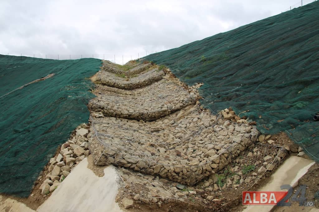 Investiția a născut controverse între beneficiar, Consiliul Județean Alba și asocierea care a realizat investiția. În timpul execuției lucrărilor au apărut alunecări de teren iar pentru stabilizare a fost nevoie de 46 de ziduri, fundate pe micro-piloți forați la partea de jos și ancorați în partea de sus, ziduri menite să stabilizeze taluzul. În plus, a fost nevoie de un sistem de drenaj care să preia apa. O lucrare complicată și scumpă pe care reprezentanții CJ Alba au refuzat să și-o asume, considerând că responsabil este constructorul care de altfel a realizat și proiectarea, nu doar execuția. Lucrările au fost realizate deocamdată pe cheltuiala Asocierii Porr Construct SRL - Porr Bau GmbH - Entsorga Italia SpA. Reprezentantul constructorului a spus că lucrările suplimentare ar fi de aproximativ 7 milioane de lei.