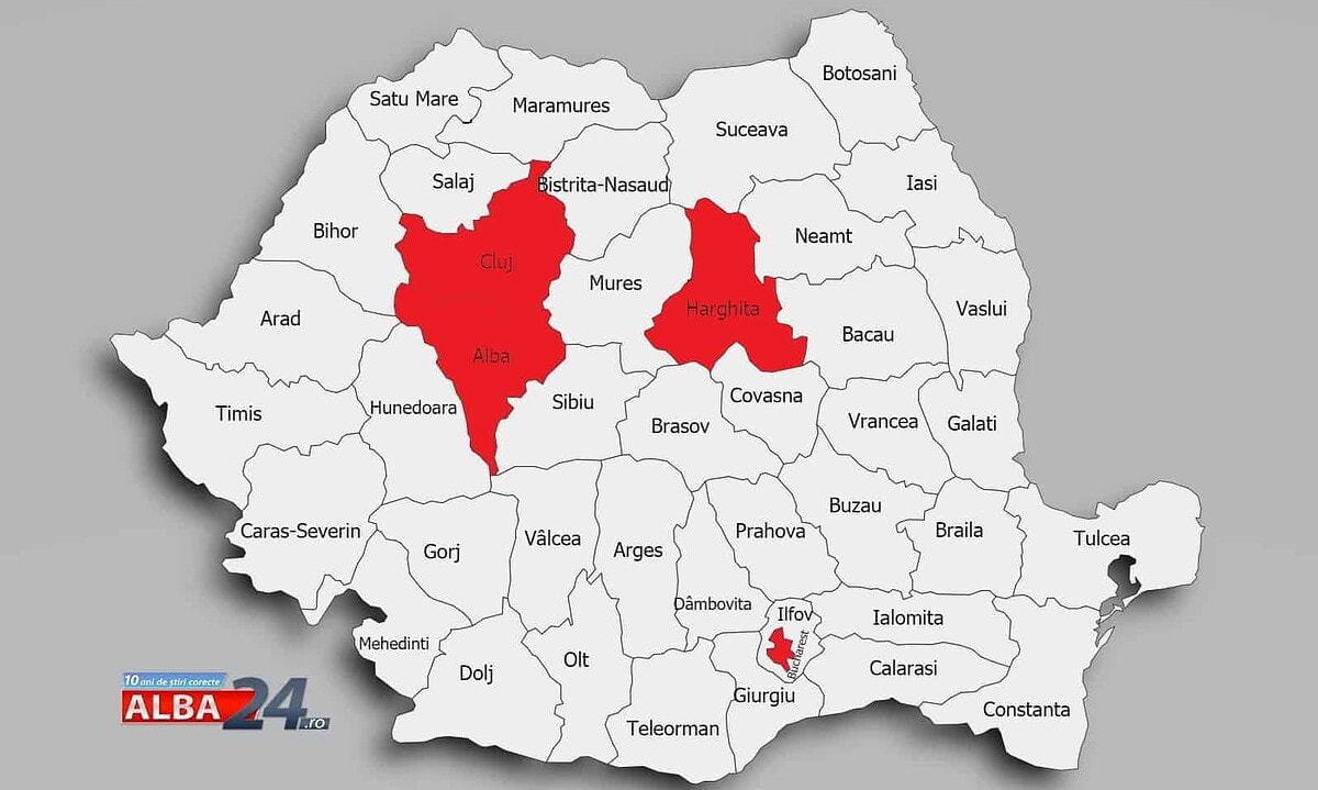 Potrivit acesteia, județul Alba se află pe primul loc cu incidență de 3.54 (anterior 3.37). București are 3.33 (anterior 3.31). Clujul are 3.18. Incidență 3 are și Harghita.