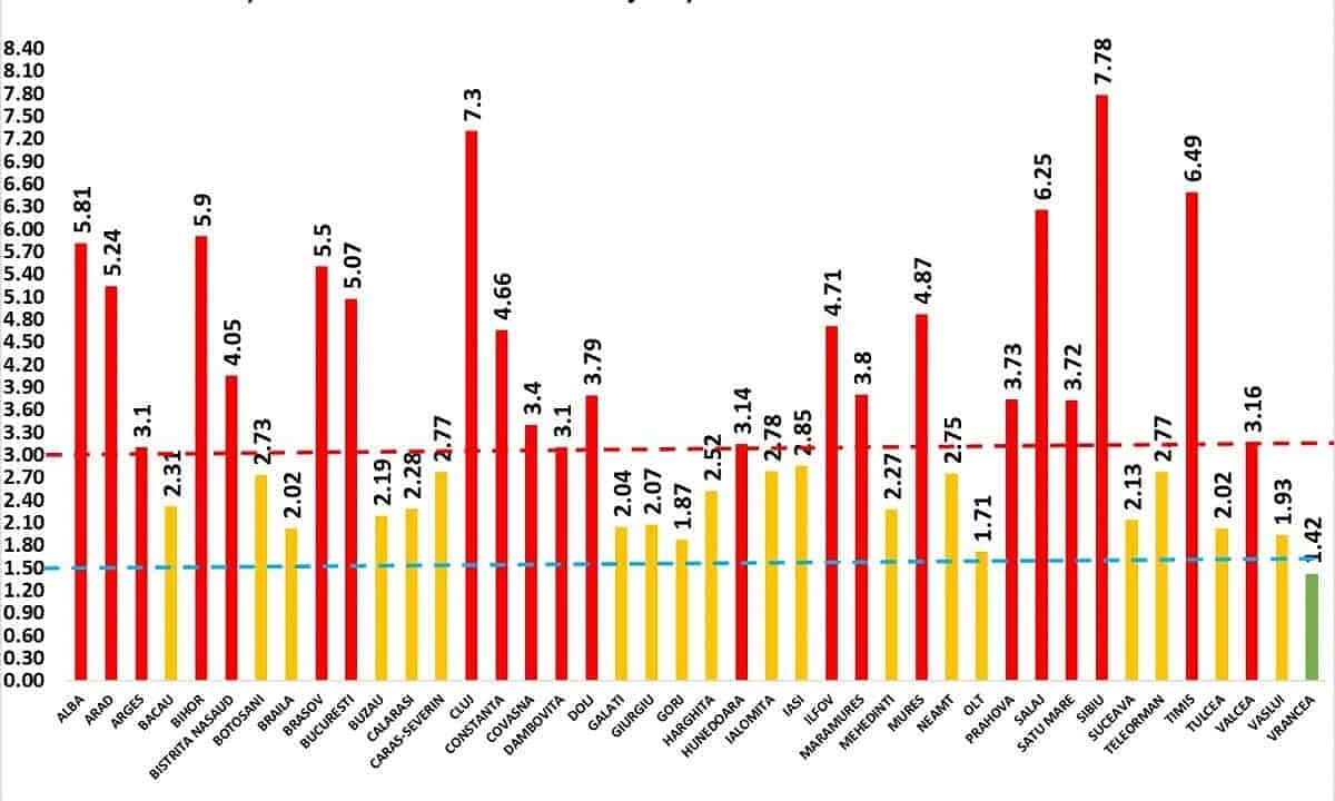 GRAFIC: Topul județelor cu incidența cea mai mare a cazurilor COVID. Date oficiale din 13 noiembrie